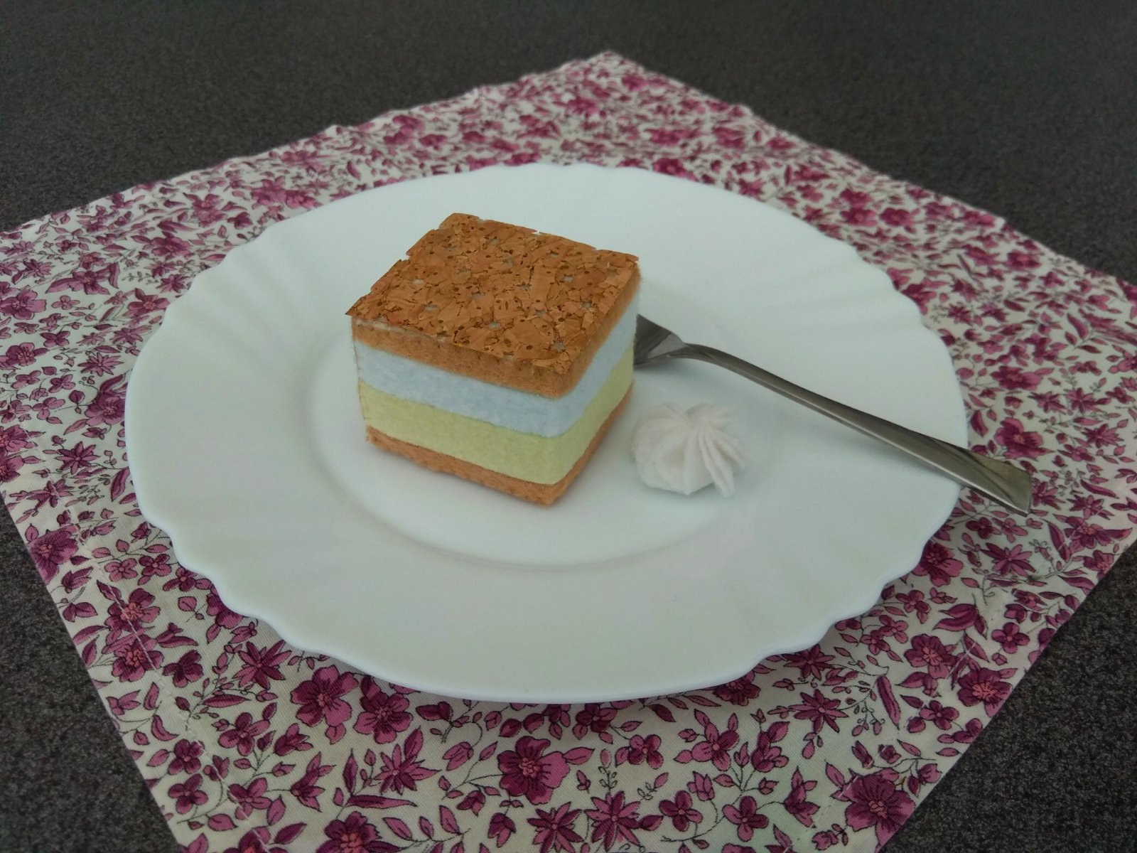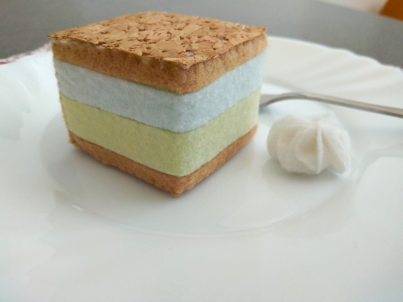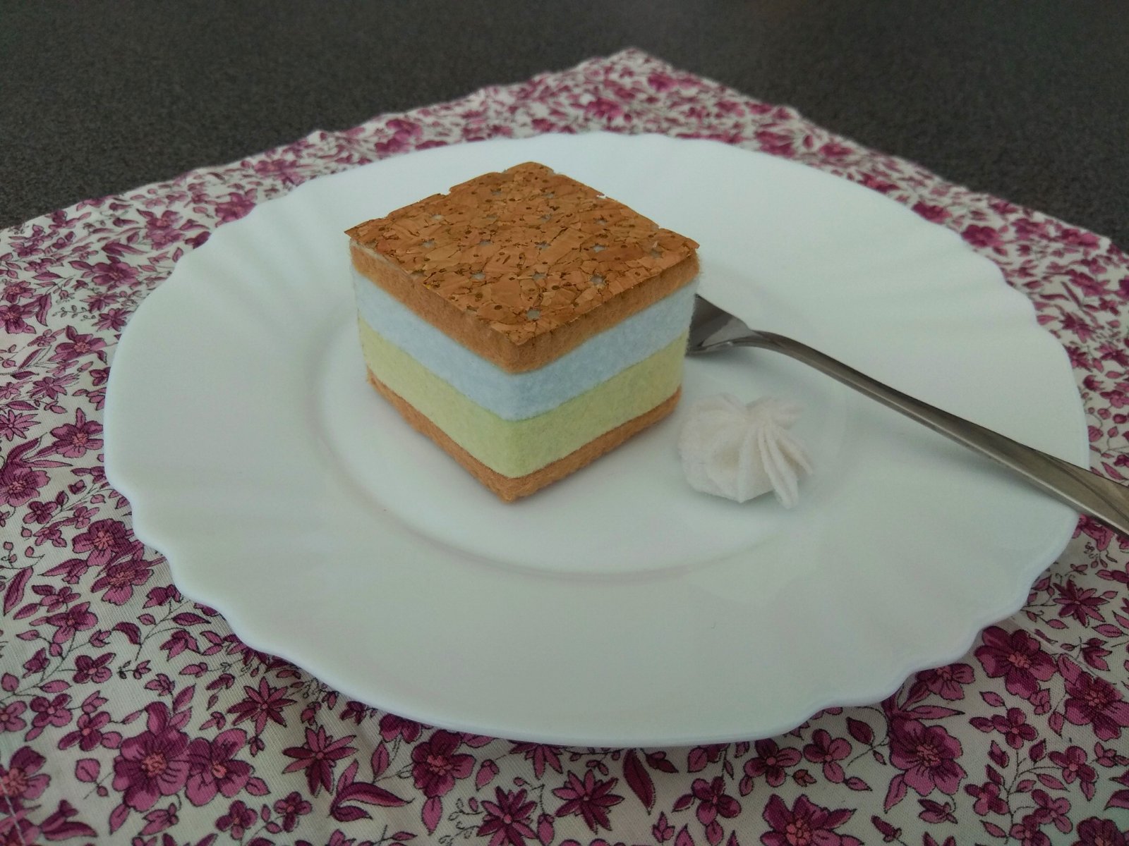 Kremeš :), ušitý ručne z plste, vyplnený molitanom. Poleva je tenka pokorkovaná tkanina.