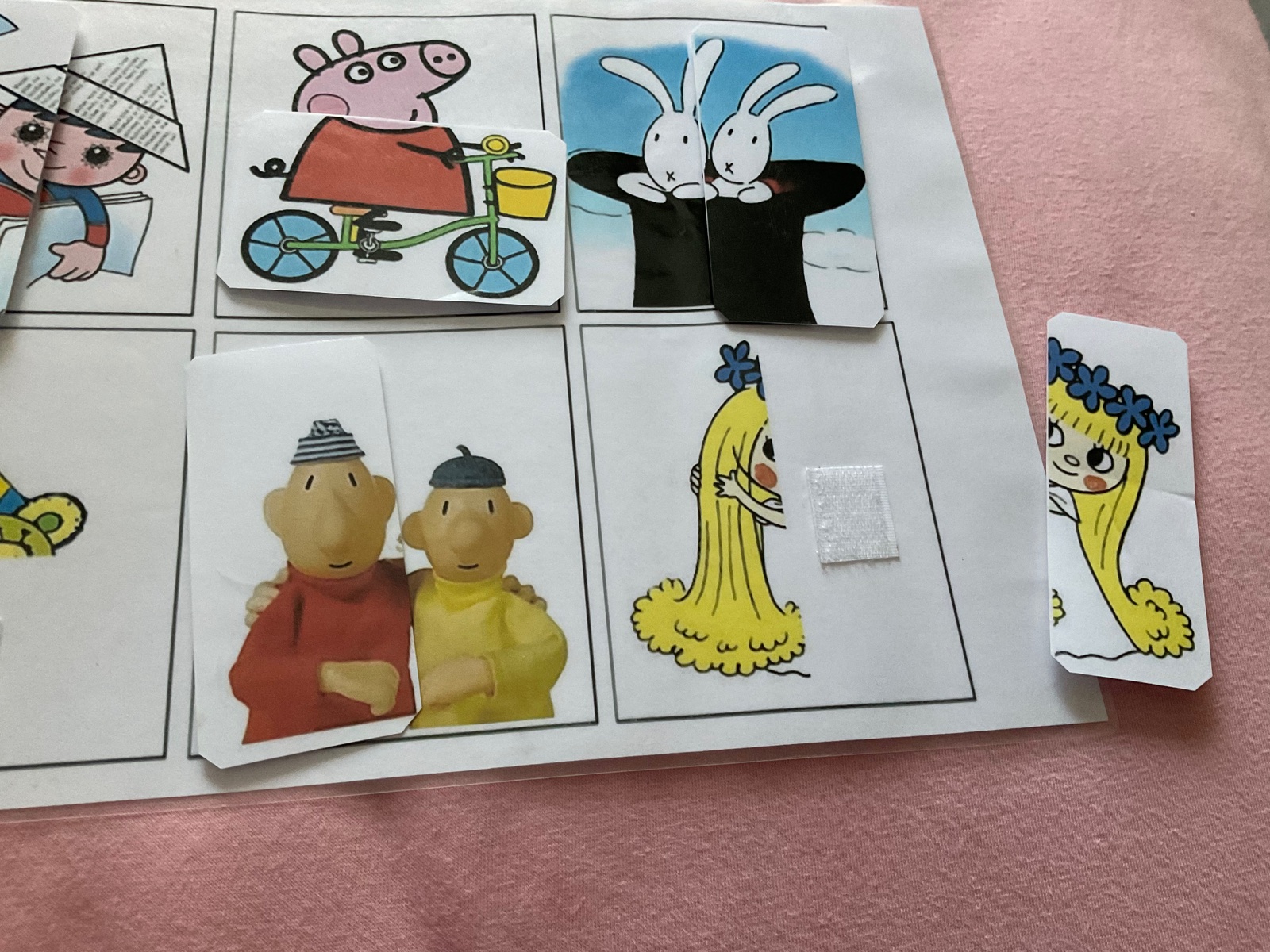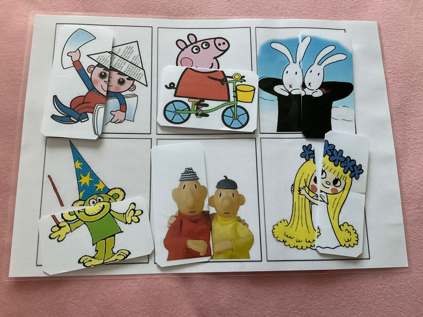Jednoduche 2 dielne puzzle na suchy zips. Laminovane. S rozpravkovymi postavickami.
