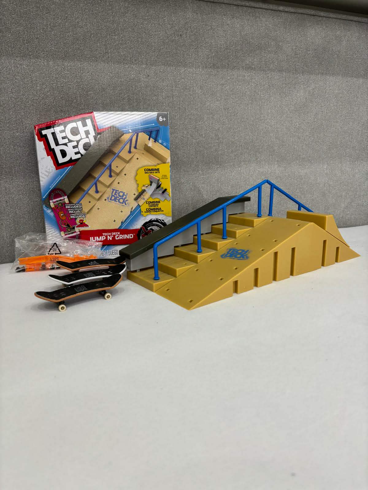 Popis: Schodisko so zábradlím a rampou je jednou z prekážok, ktorú sa môžu naučiť chlapci zvládať so svojim fingerboardom. Buď samostatne alebo ako súčasť existujúcej dráhy, ktorú môžu obohatiť týmto prvkom. Ovládanie tohto trikového boardu im ešte viac podporí zručnosť a cit v ich prstoch.
