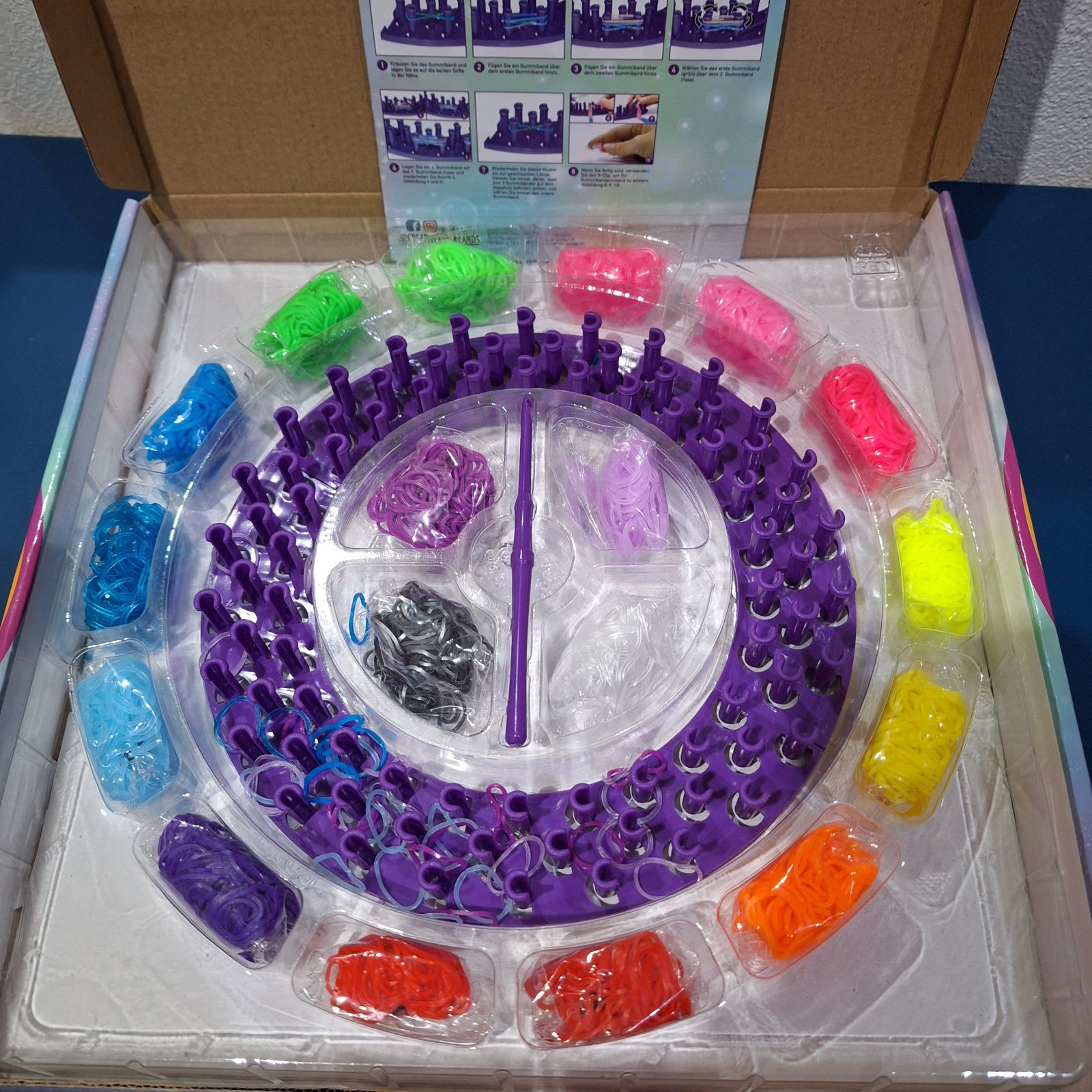 Posuvam kreativnu sadu na vyrobu gumickovych naramkov, otvorene pre foto.
