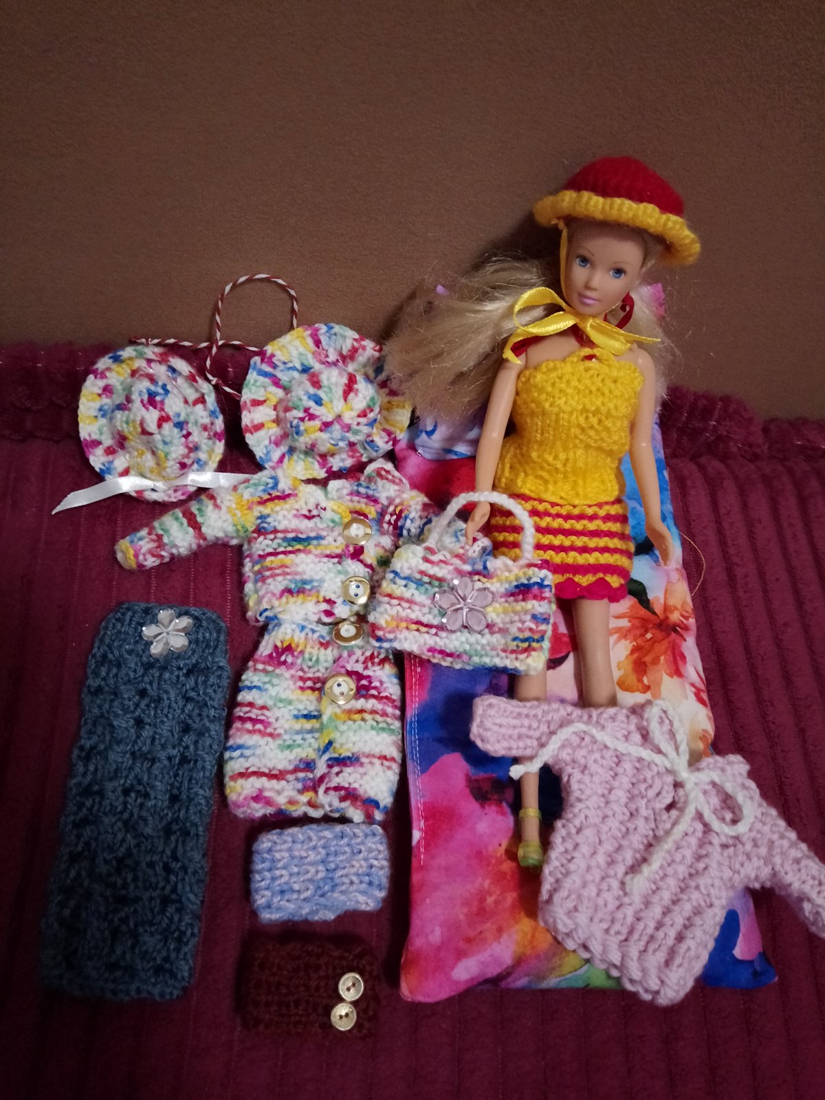 Odevy pletené nepoužité, bábika je staršia tu darujem spolu len všetko, 7eur aj s poštovným doporučene druhou triedou platba vopred na dobierku nie