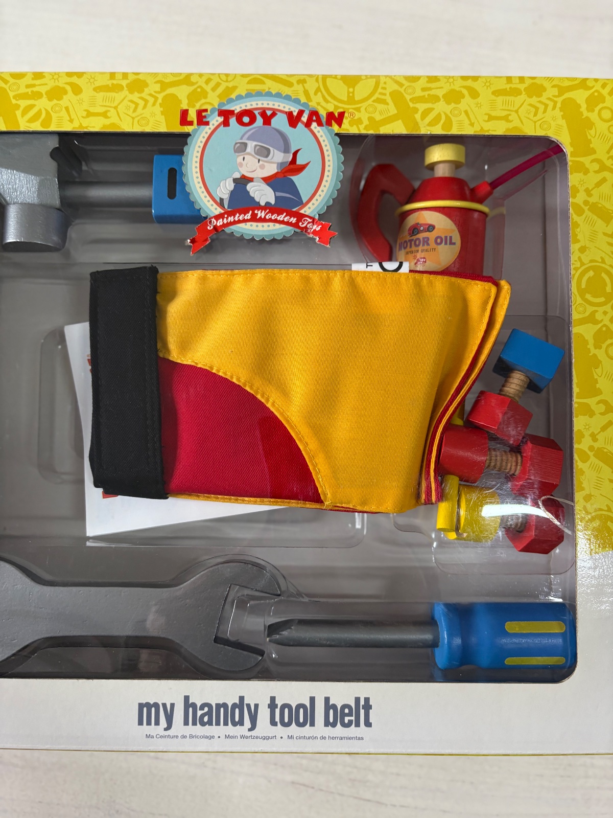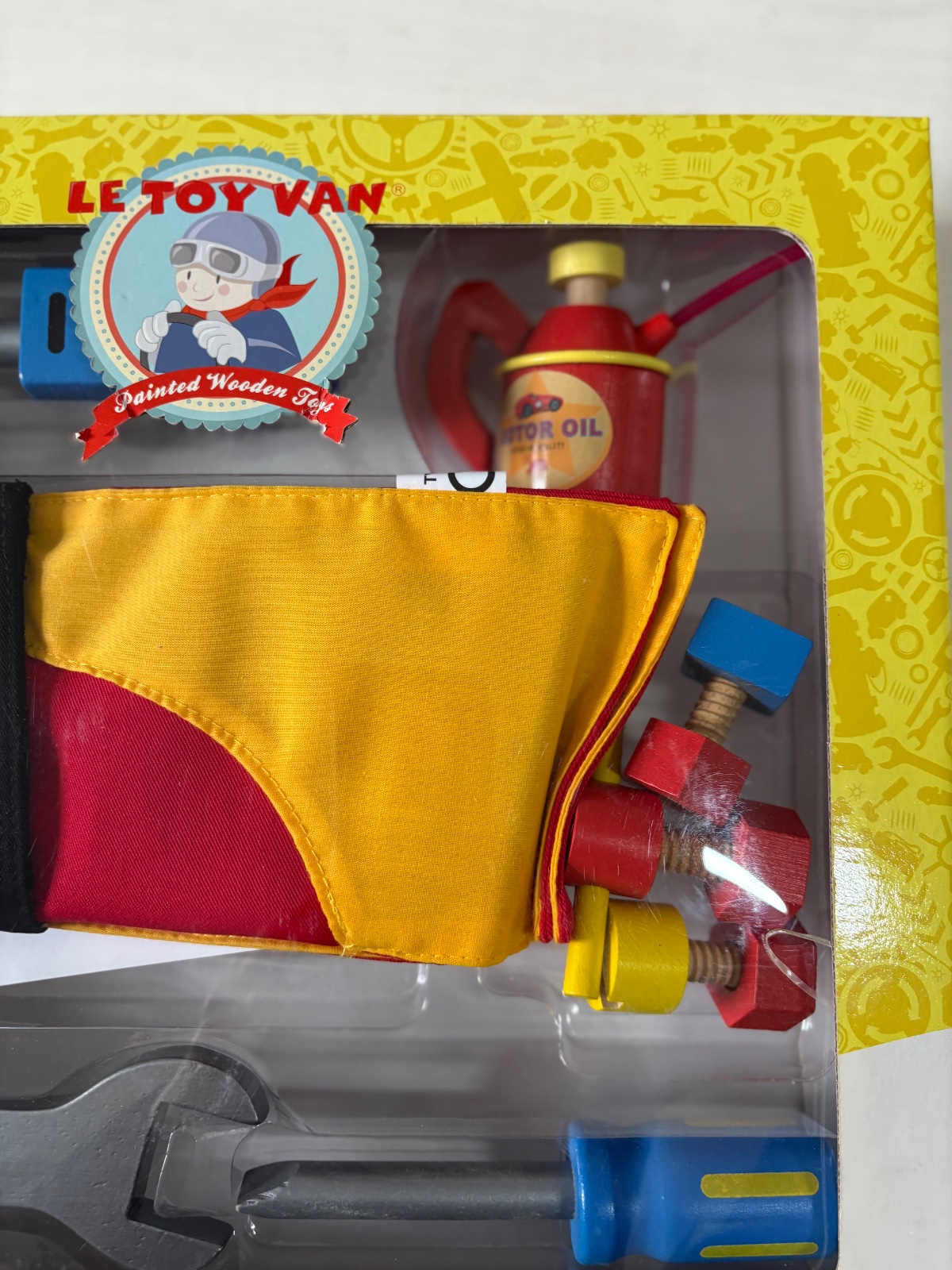 Opasok s dreveným náradím pre deti. Pracovný opasok ako pre skutočného majstra. Kutilský opasok Le Toy Van obsahuje skrutkovač, kladivo, olejničku, kľúč a skrutky s maticami. Všetky nástroje sú vyrobené z kvalitného dreva z obnoviteľných zdrojov a sú skvele opracované a ručne maľované netoxickými farbami na prírodnej báze. Hranie rolí s náradím je skvelá aktivita pre deti na rozvoj motorických schopností, predstavivosti a logického uvažovania dieťaťa a prispieva aj k socializácii a rozvoju rečových schopností detí.Le Toy Van je britská rodinná firma s tradíciou od roku 1995. Drevené hračky navrhuje vo Veľkej Británii a vyváža do 50 krajín sveta. Všetky detské hračky a produkty tejto značky spĺňajú najprísnejšie bezpečnostné normy. Vyrábajú sa eticky a ohľaduplne k životnému prostrediu z prírodných obnoviteľných zdrojov.Hračka je vhodná pre deti od 3 rokov.Materiál: drevo, textilRozmery: 35 x 3,2 x 36 cm.