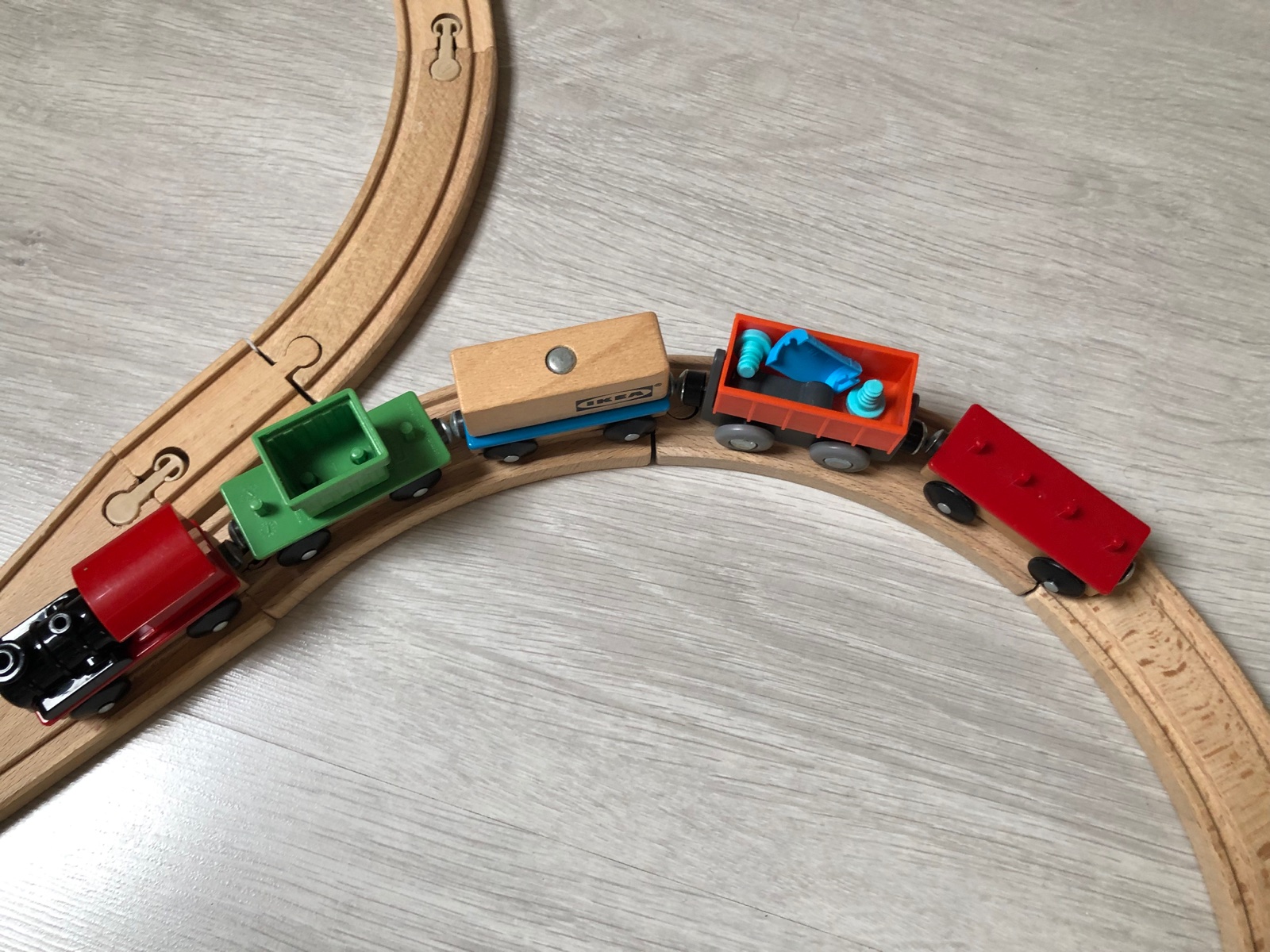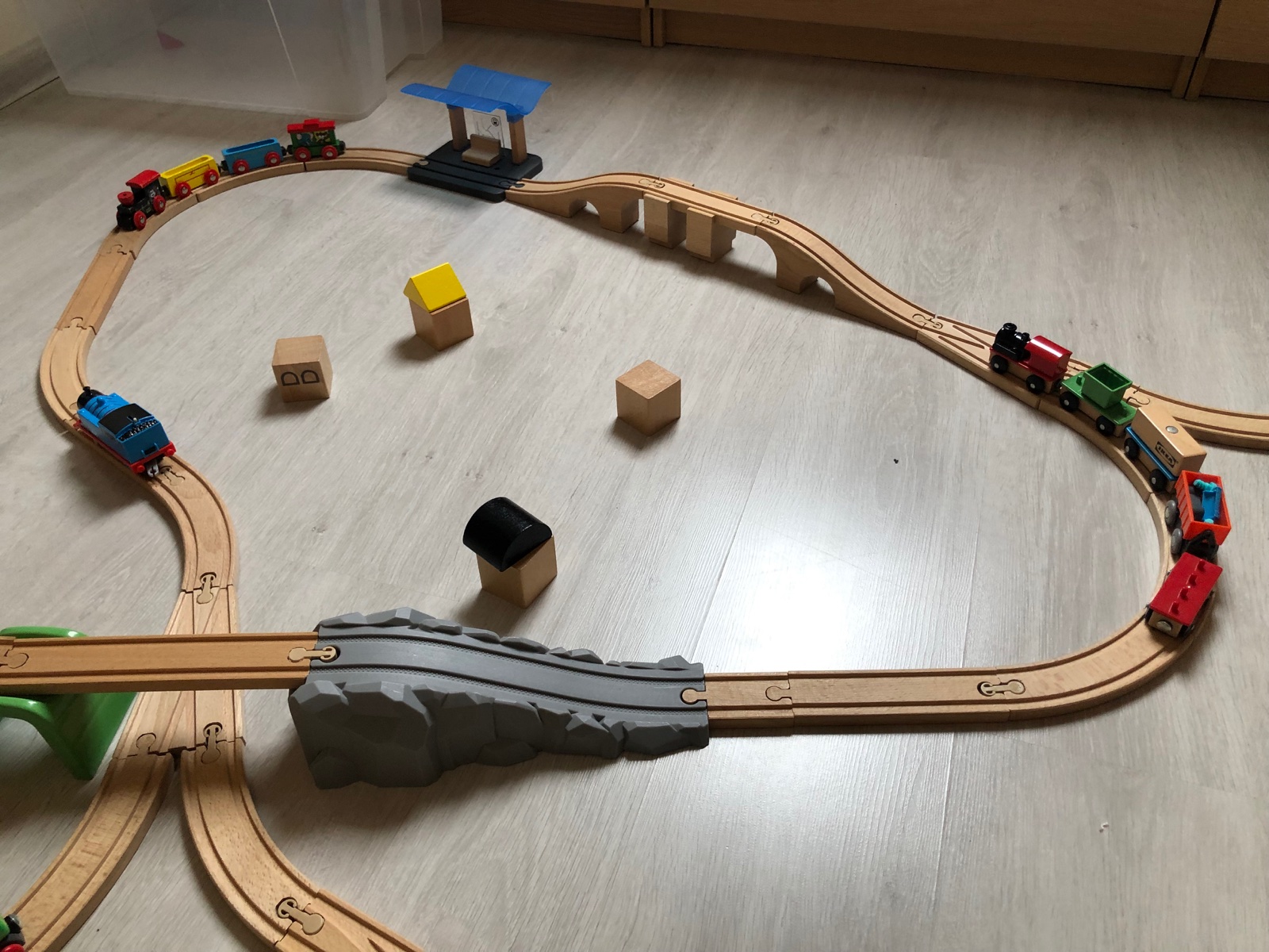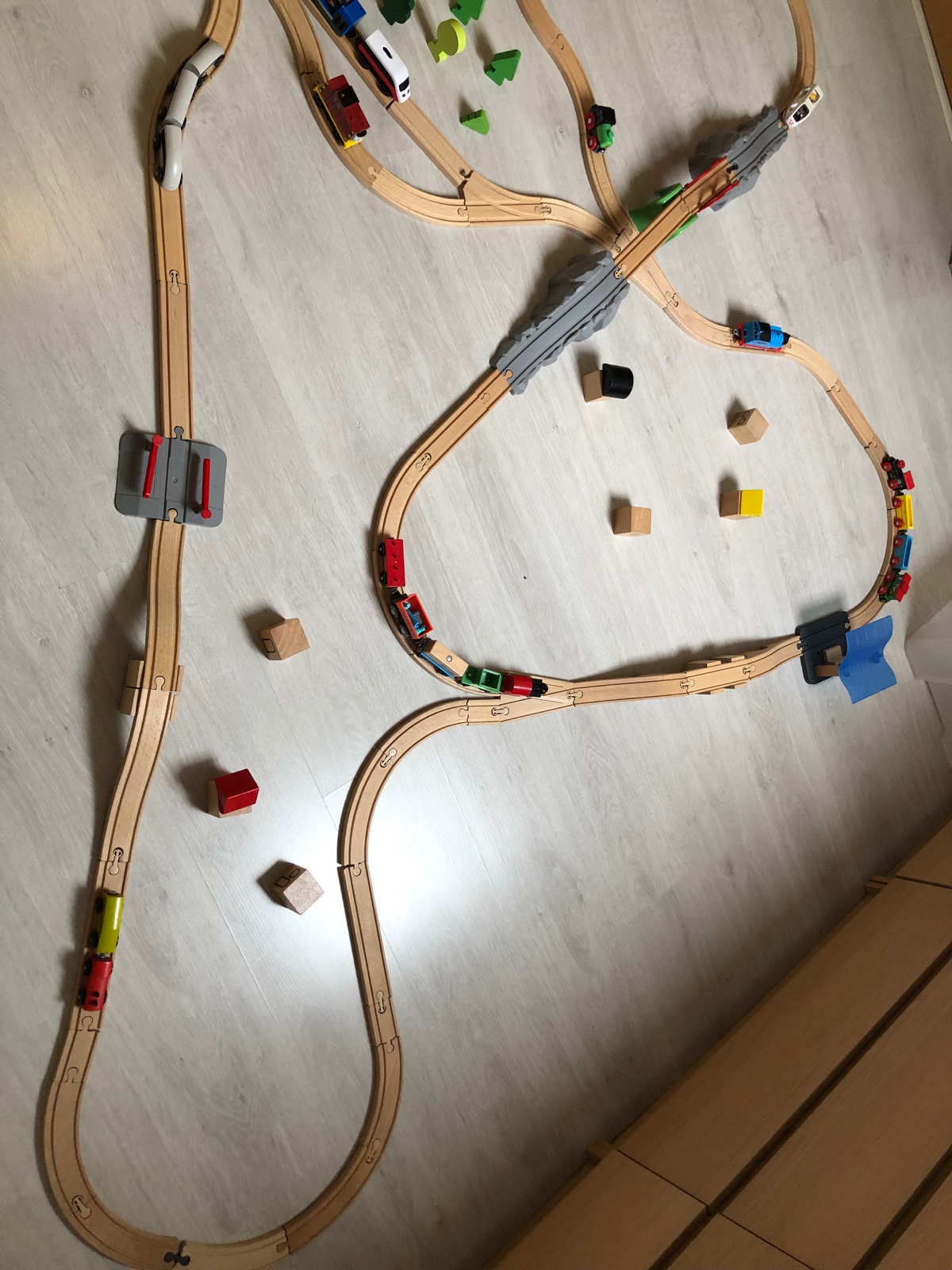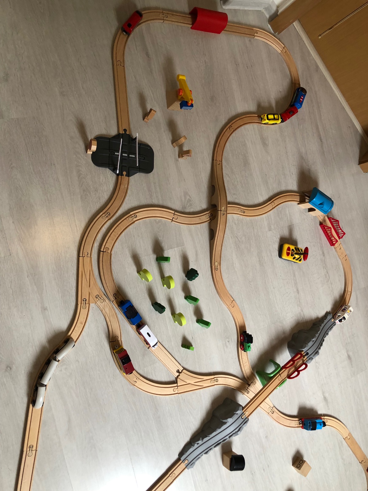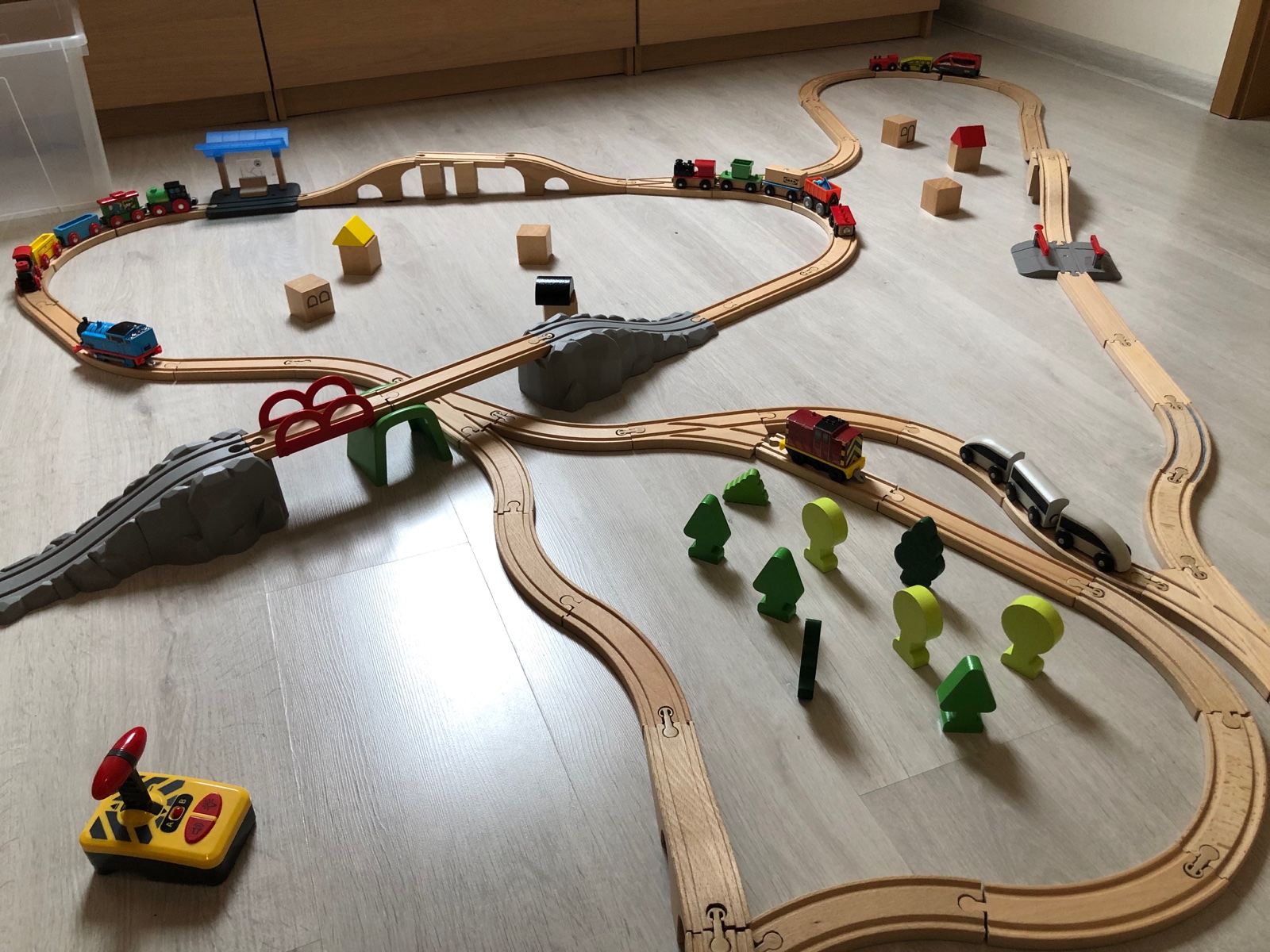 Ponúkam zbierku drevených koľajníc, všetko kompatibilné. pekný hraný stav bez poškodení. Niektoré kusy/sady boli dokupované postupne, je to veľká zbierka a dá sa z nej vytvoriť čokoľvek, stačí len fantázia. 9 stromčekov drev, 4x značka, 7 kociek ako domček, 1x žeriav, 1 x červený vláčik na ovládanie s panáčikom, 1x biely vláčik na baterky s panacikmi, 2x vlak Tomas na baterky, 1x modry vláčik (ide na baterky a ma panáčikov), veľa drevených vlacikov z Ikea,