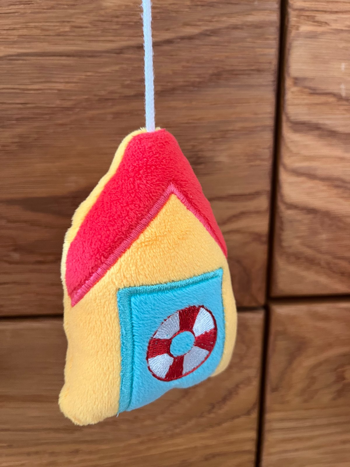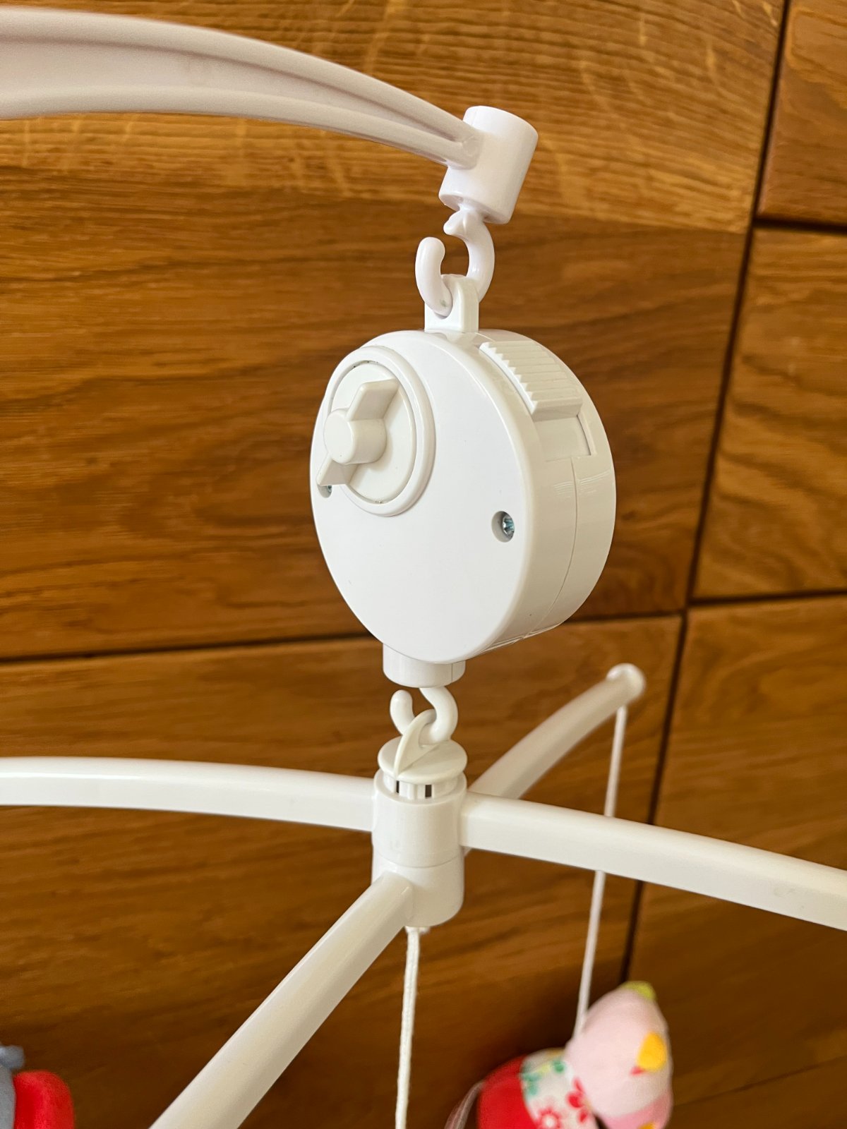 Súčasťou kolotoča sú visiace hračky, koliesko so zvonkohrou a držiak na uchytenie k postieľke.