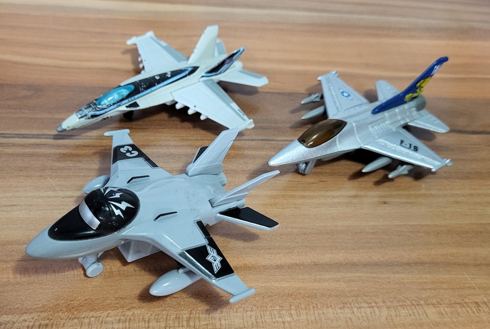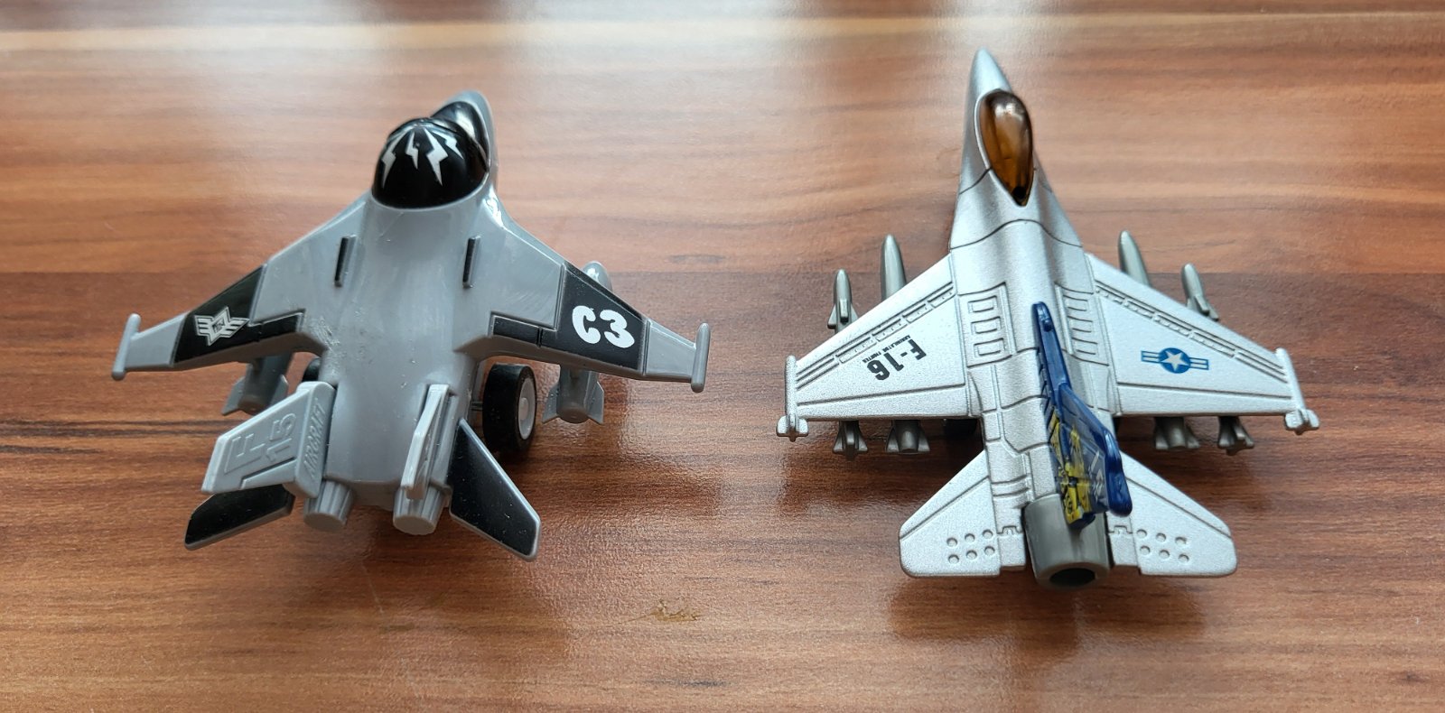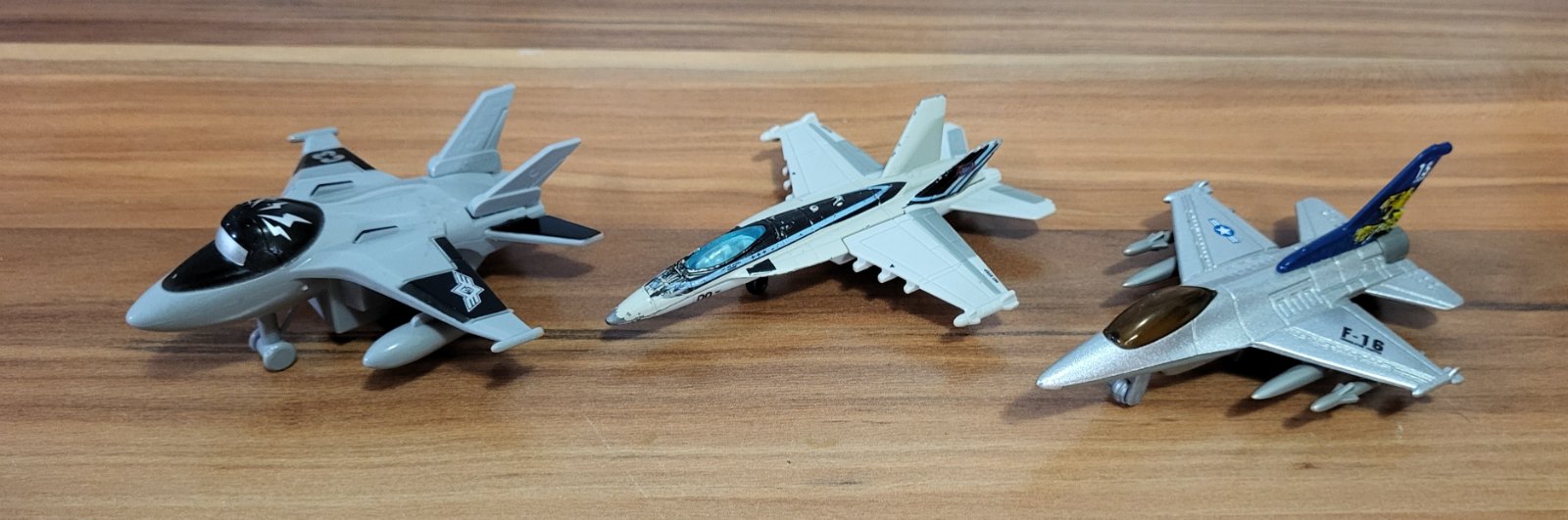 všetky veľmi dobrý stav, 2x kov v kombinácii s plastom a 1x plastová, jedna zo stíhačiek má ošúchané niektoré časti, 2x s kovom majú kvalitné spracovanie, prepracované, plastová má zotrvačník, pošlem poštou alebo packetou