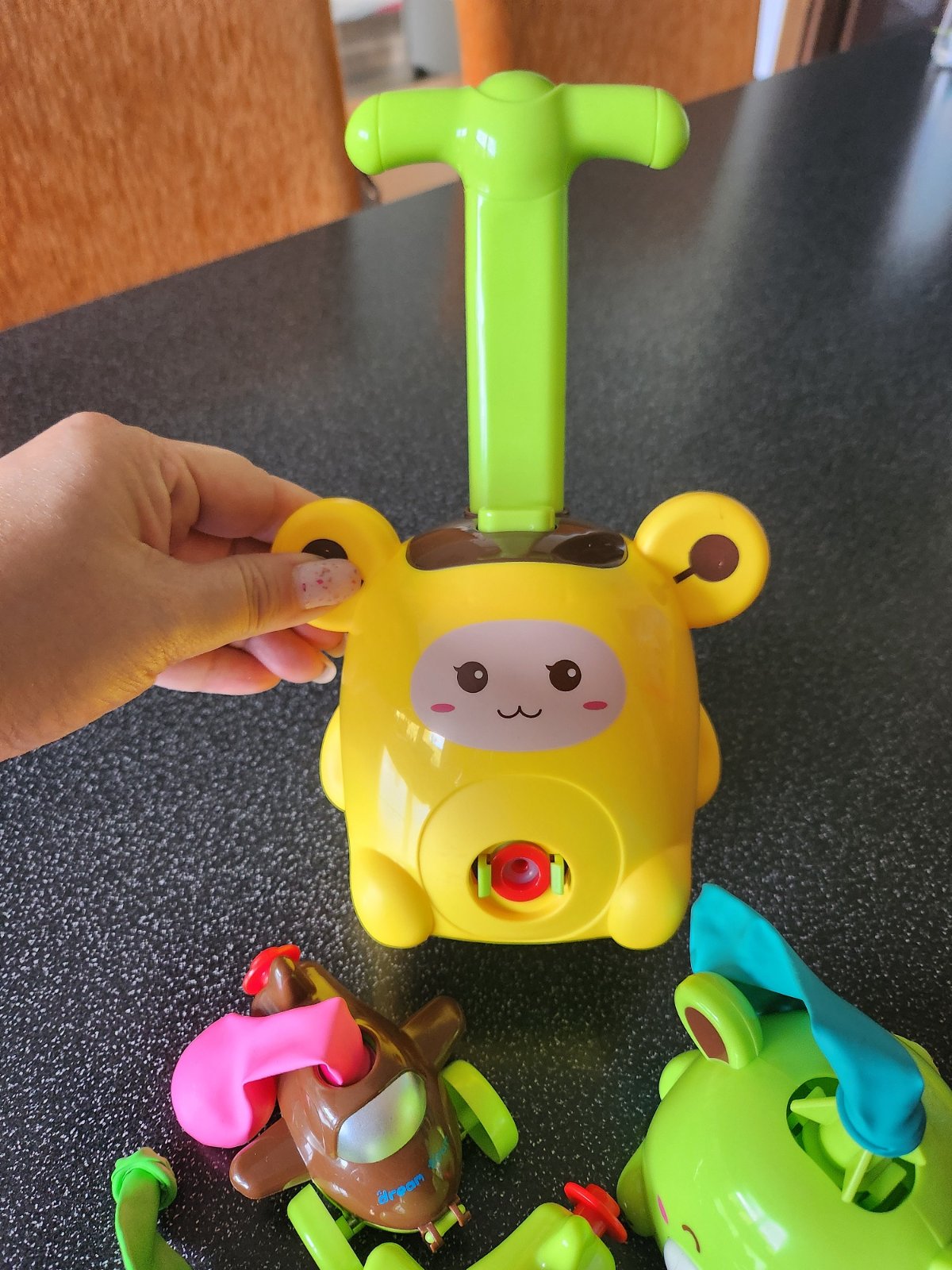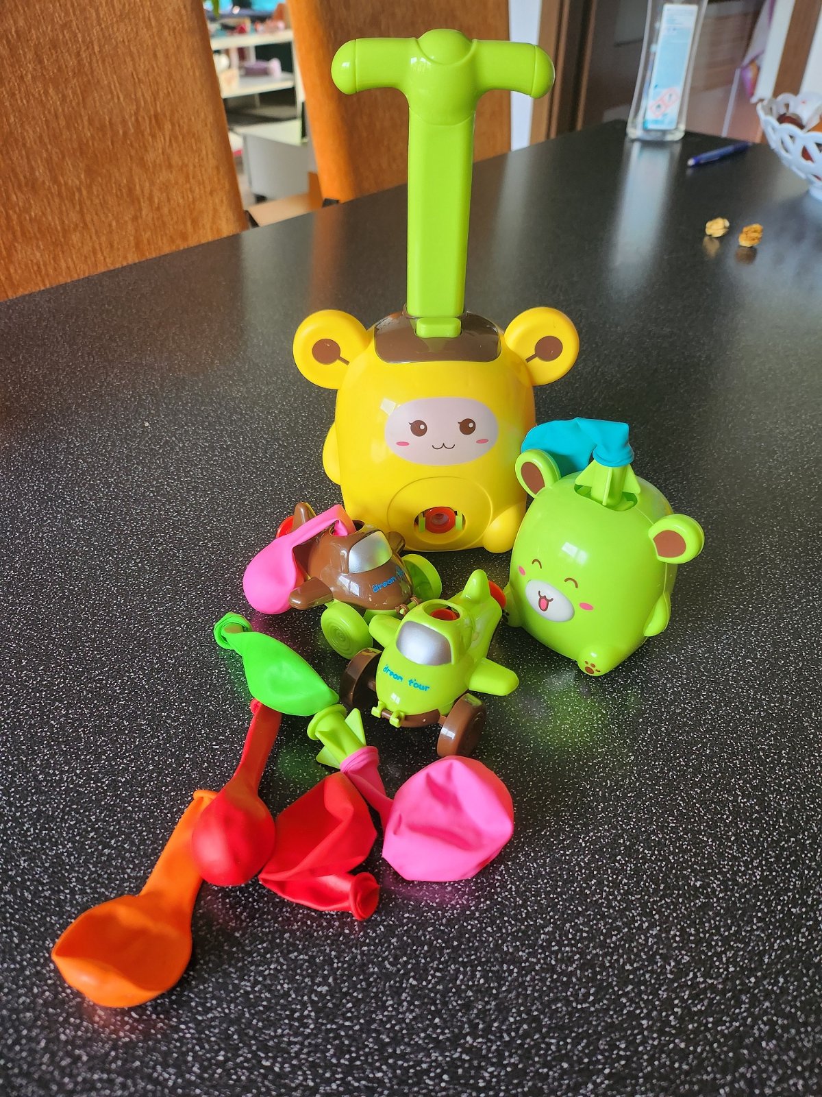 Predám málo hranú sadu 2 lietadiel, ktoré sú poháňané vzduchom z balóna (nafúkne sa tak, že lietadlo sa pripne k ručnej pumpe a čím viac sa napumpuje, tým viac dôjde). Takisto je k nemu ešte aj menšia stanica (macko), kde sa dá pripnúť len balón, tiež napumpovať a vystrelí do vzduchu.