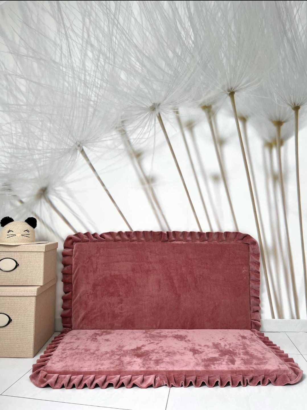 Podložka môže ležať naplocho na zemi alebo ju môžete ohnúť na polovicu a oprieť o stenu.