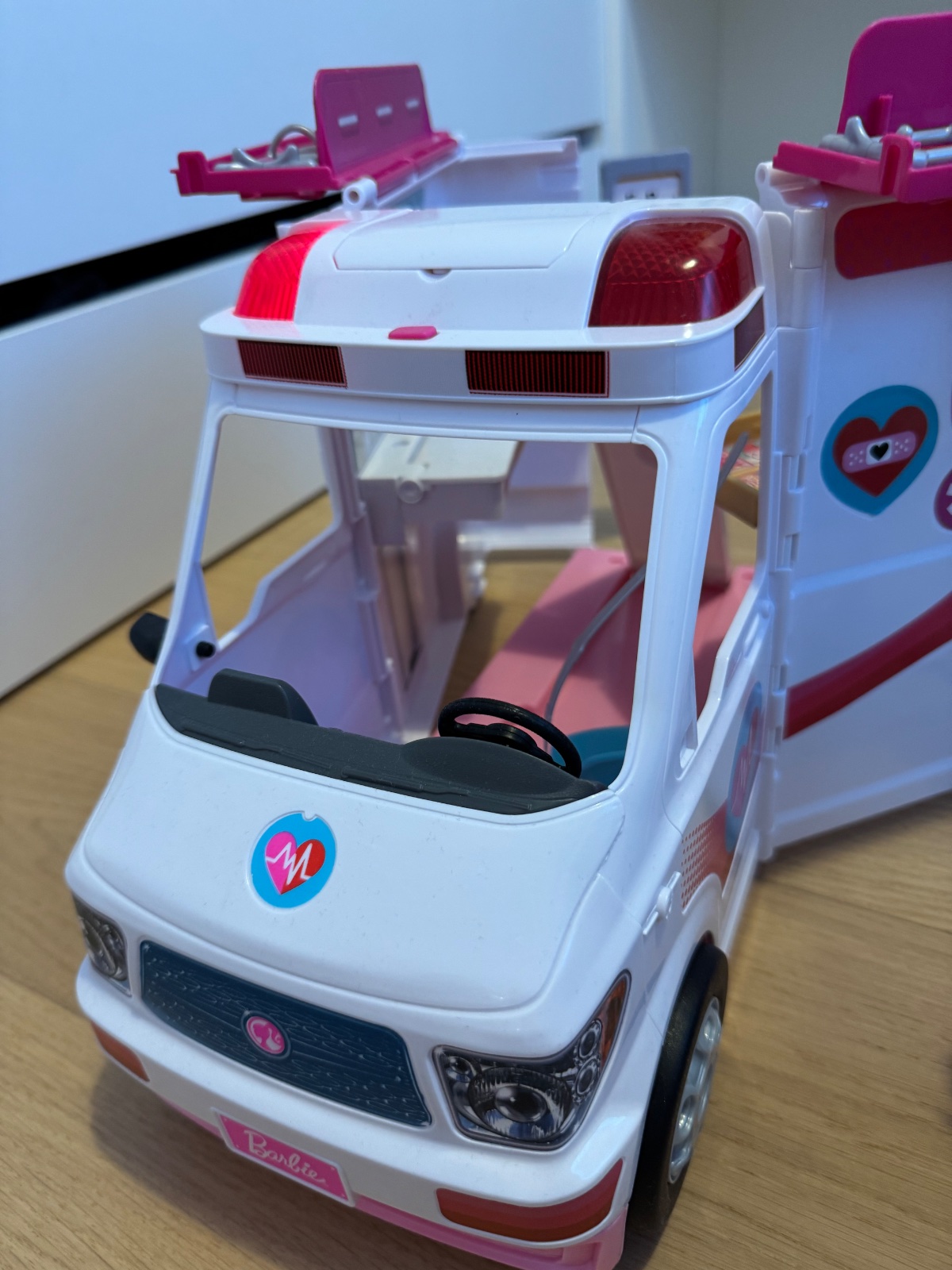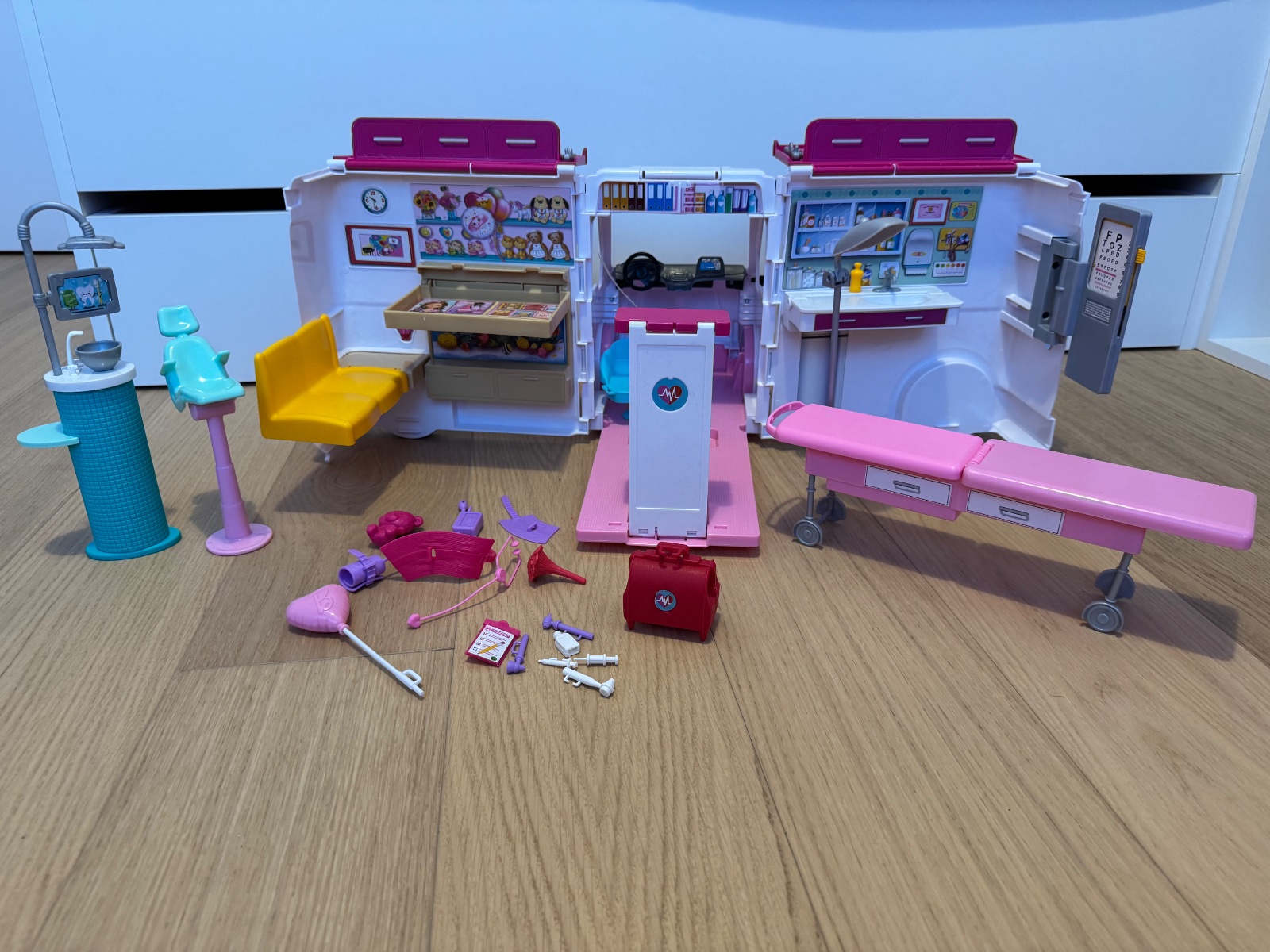 Bez znamok pouzivania, komplet balenie+navyse zubarska sada. Sanitka vydava zvuk, a tiez blika svetlo.