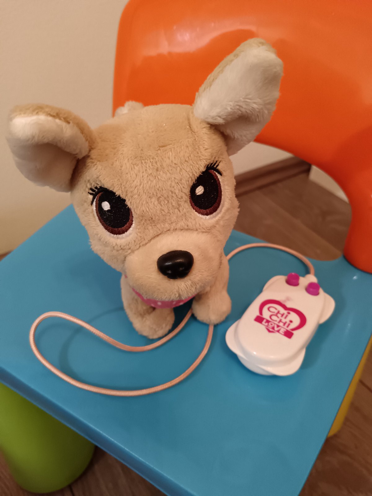 Posunieme krásnu čivava na baterky s voditkom. Ovládač na 2 tlačítka, jedno čivava ide a steká a druhe vrti chvostom. Kupované v Draciku.