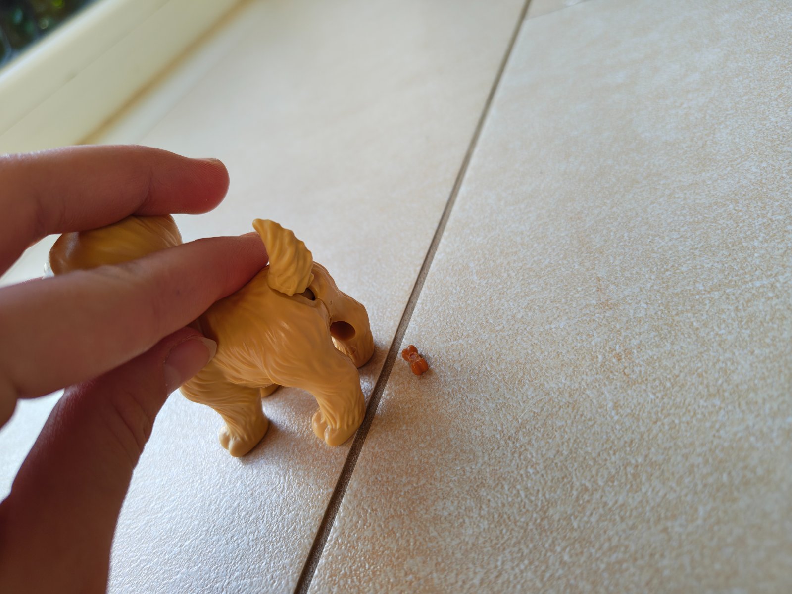 Predám Barbie psíky, ktoré cikajú a papajú. Najväčší pes ciká na novinový papier, ktorý zožltne po kontakte s vodou a po chvíľke sa vráti do pôvodného stavu. Menší béžový pes má tri kostičky, ktoré vie spapať a vykakať. K sade patrí aj miska na papanie a ďalší dvaja najmenší psíci.