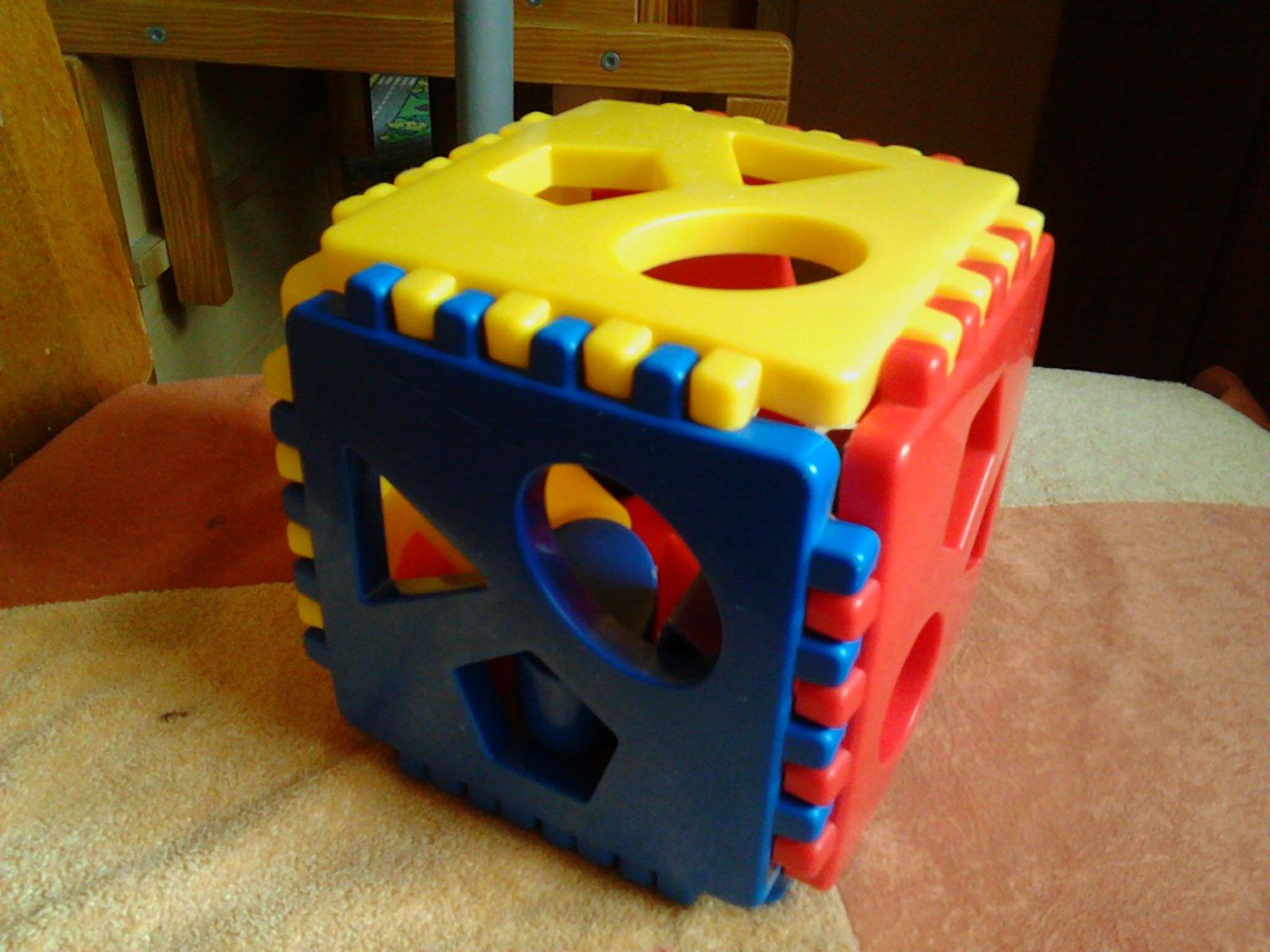 Predám vkladaciu kocku. Učí dieťa logicky vkladať kocky rôznych tvarov do správneho otvoru.