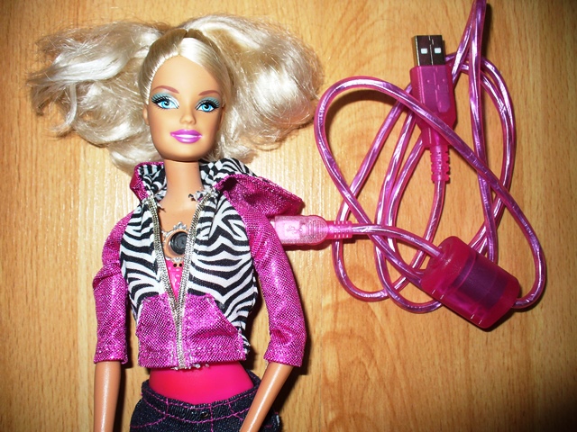 Predám Barbie bábiku Mattel, je s kamerou,po stlačení bábika nahráva ako normálna kamera a s káblom si to potom viete stiahnuť do počítača-pôvodná cena 58€,teraz 20€+2€poš.