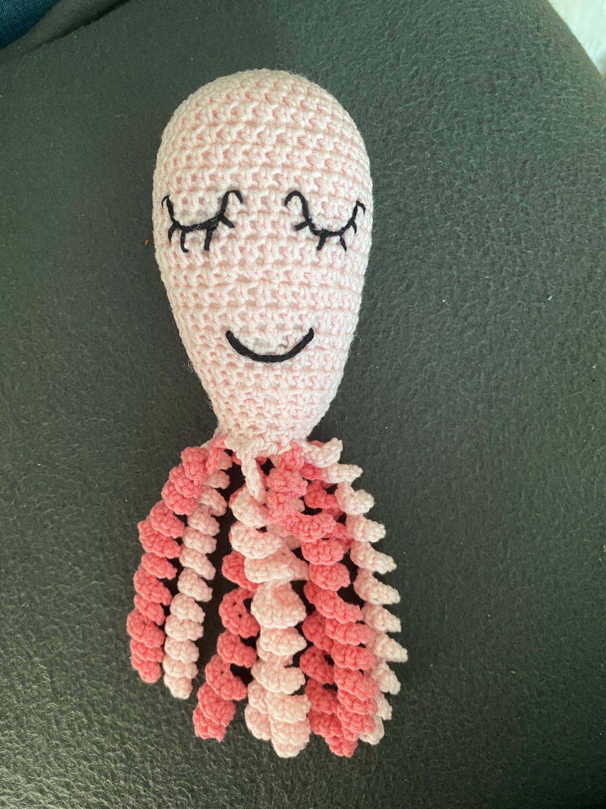 Háčkovaná chobotnica, farebné kombinácie podľa želania. Vyplnené dutým vláknom, neobsahujú malé časti takže sú vhodné pre deti od 0 rokov. Chobotnice na foto sú už darované ale nie je problém vyrobiť podobné. Cena 7€ + poštovné
