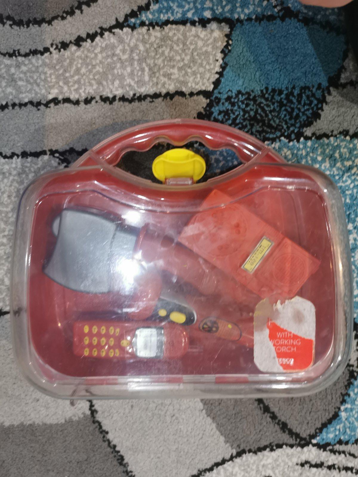 Hasičský kufrík obsahuje sekeru, vysielačku, baterku a telefón. Všetko bez poškodenia. V