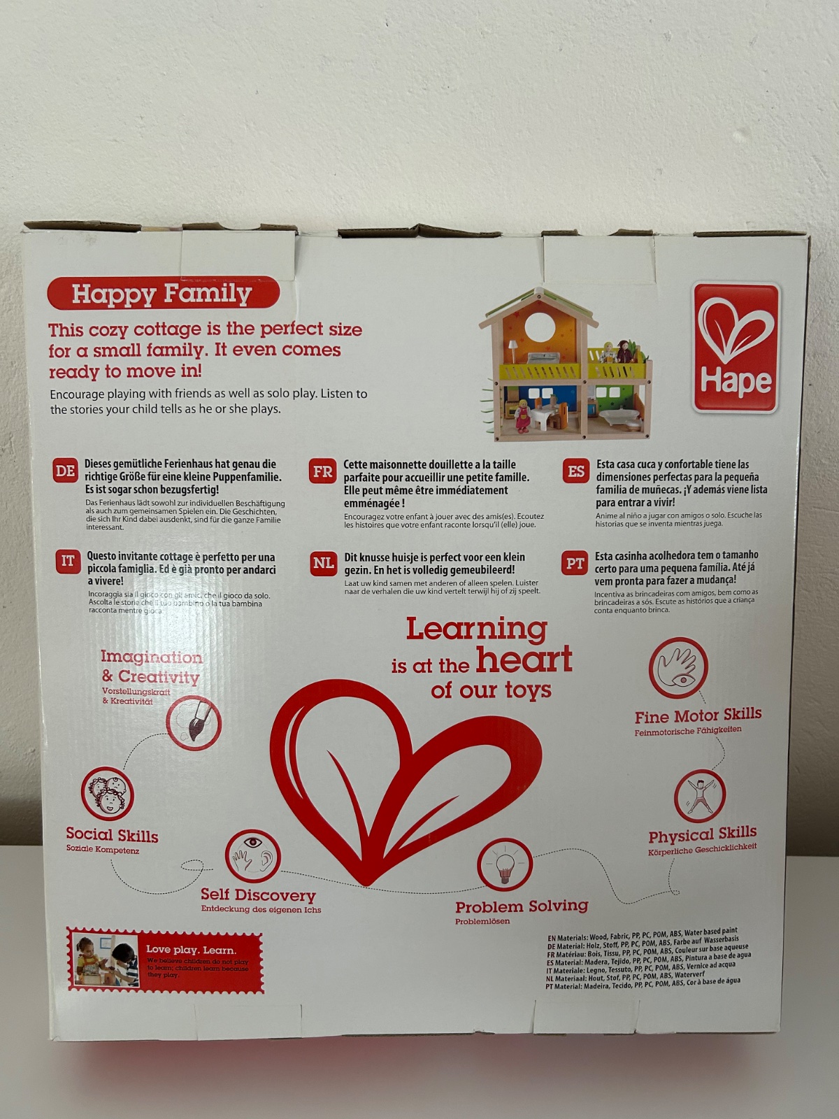 P2-3.Hape nový drevený domček.Vila ako z rozprávky! Pôvabný domček pre bábiky s troma izbičkami a veľkou terasou splní sen každého dievčatka. Drevený domček obsahuje všetok dôležitý nábytok aj tri bábiky - stačí sa len nasťahovať.
