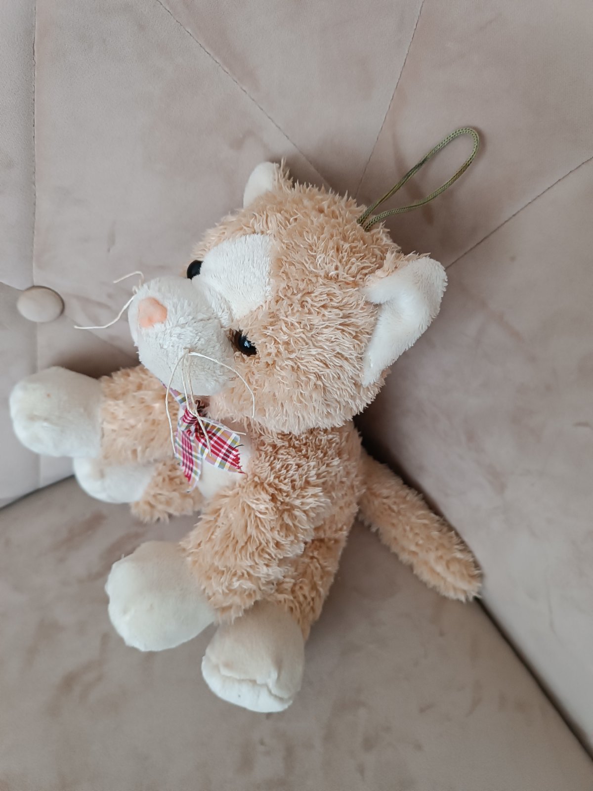 Psik aj na zavesenie, 25 cm, z príjemného materiálu na dotyk, bez poškodenia.