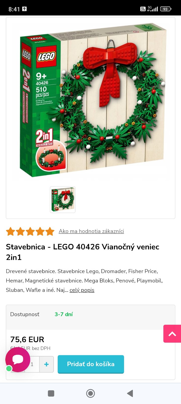Nové nerozbalené lego - limitka dva v jednom - vianočný veniec závesný alebo adventný veniec.