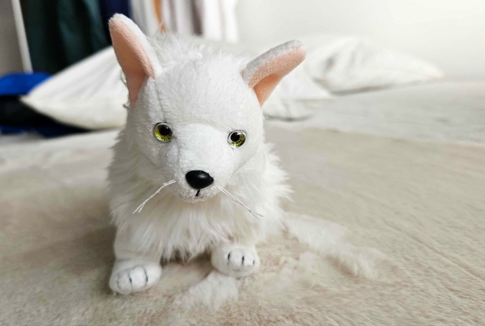 Plysova detska hracka, biely pes /vlk