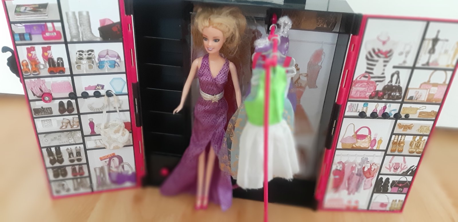 Skrina,barbie,3ks siat,kabelôčka,zrkadielko