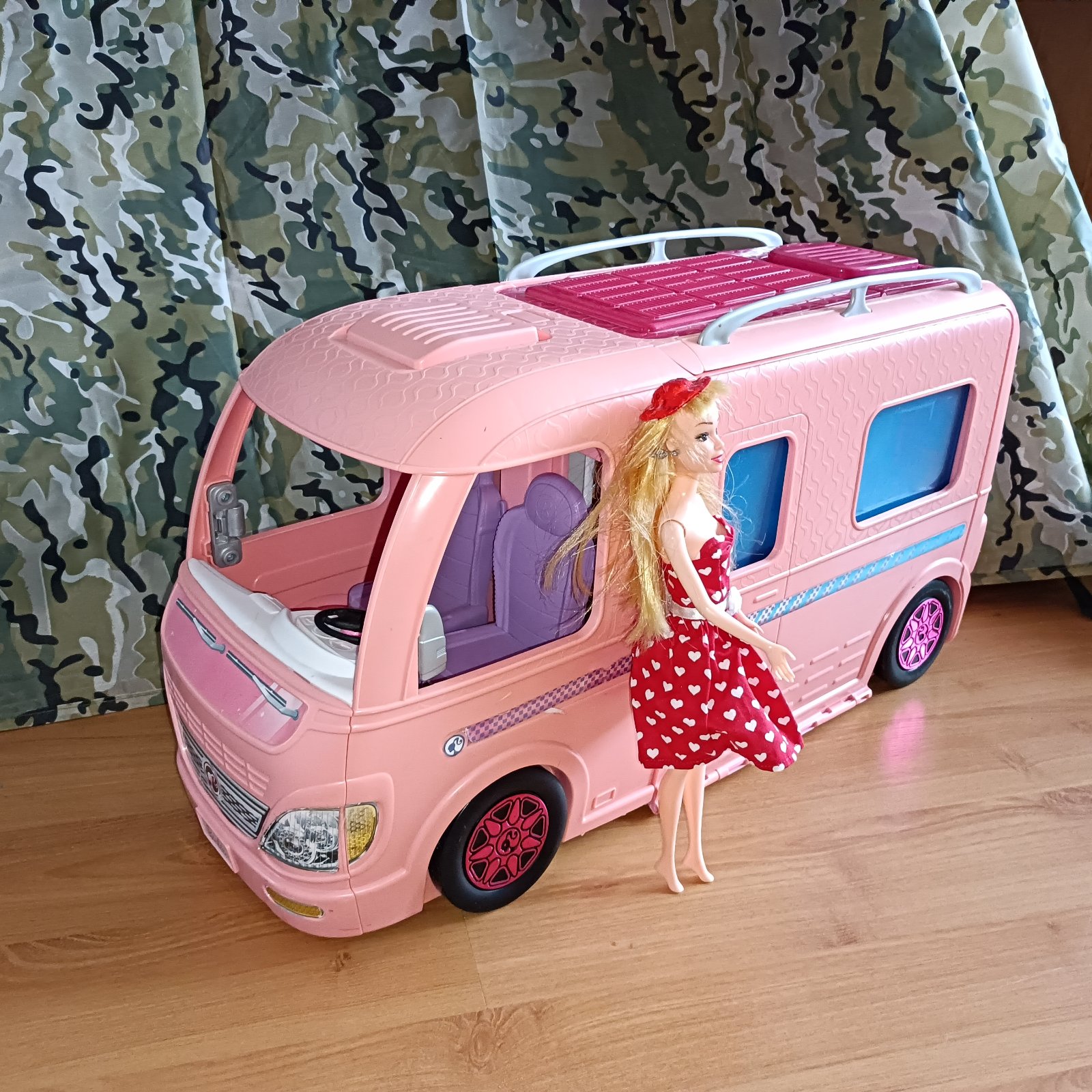 Barbie karavan s príslušenstvom. Mám k tomu aj originál krabicu. V hranom, zachovalom stave. Jedna bábika k tomu zadarmo.
