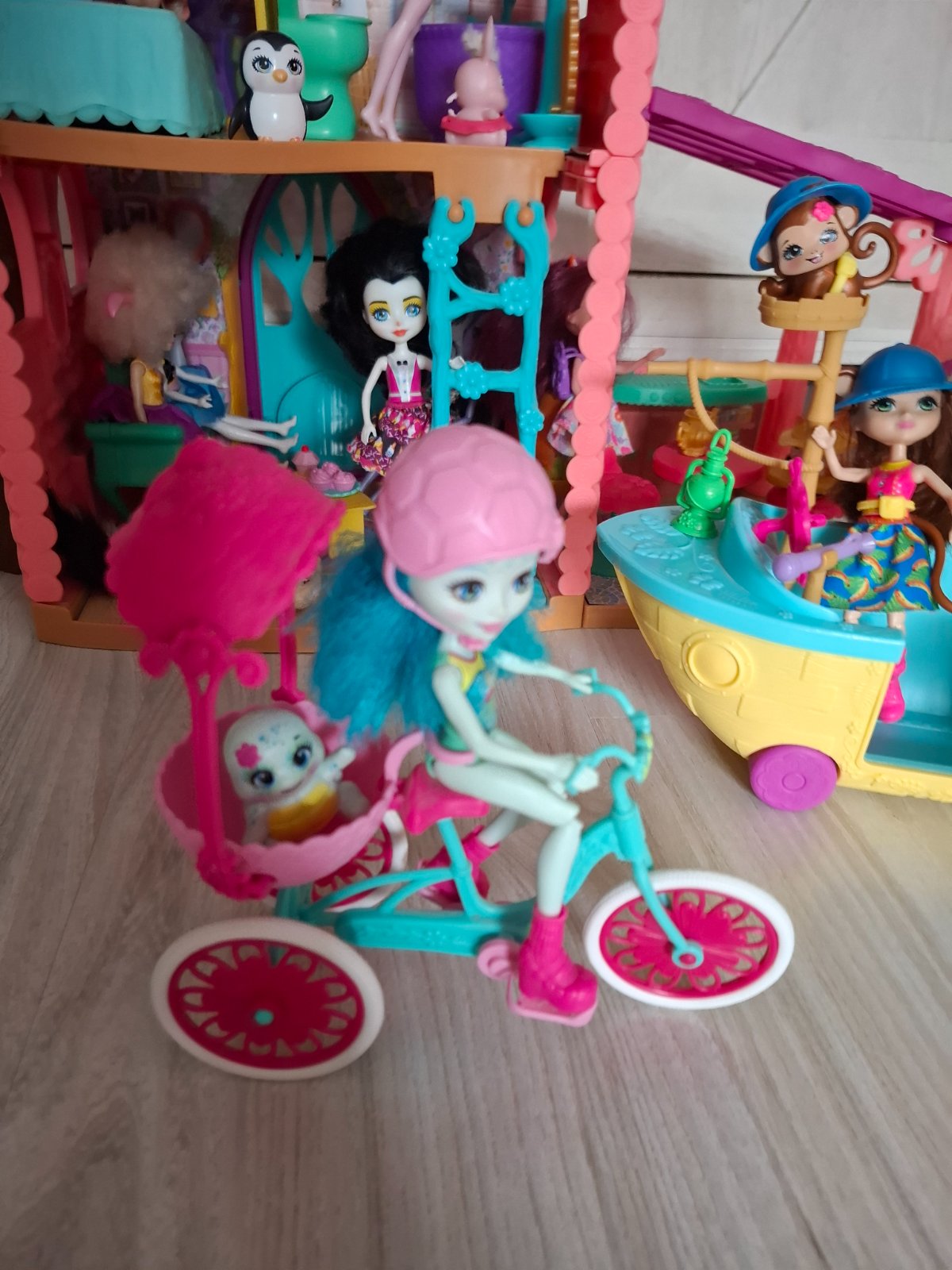 Domček Enchantimals + loď + hojdačka+ bicykel