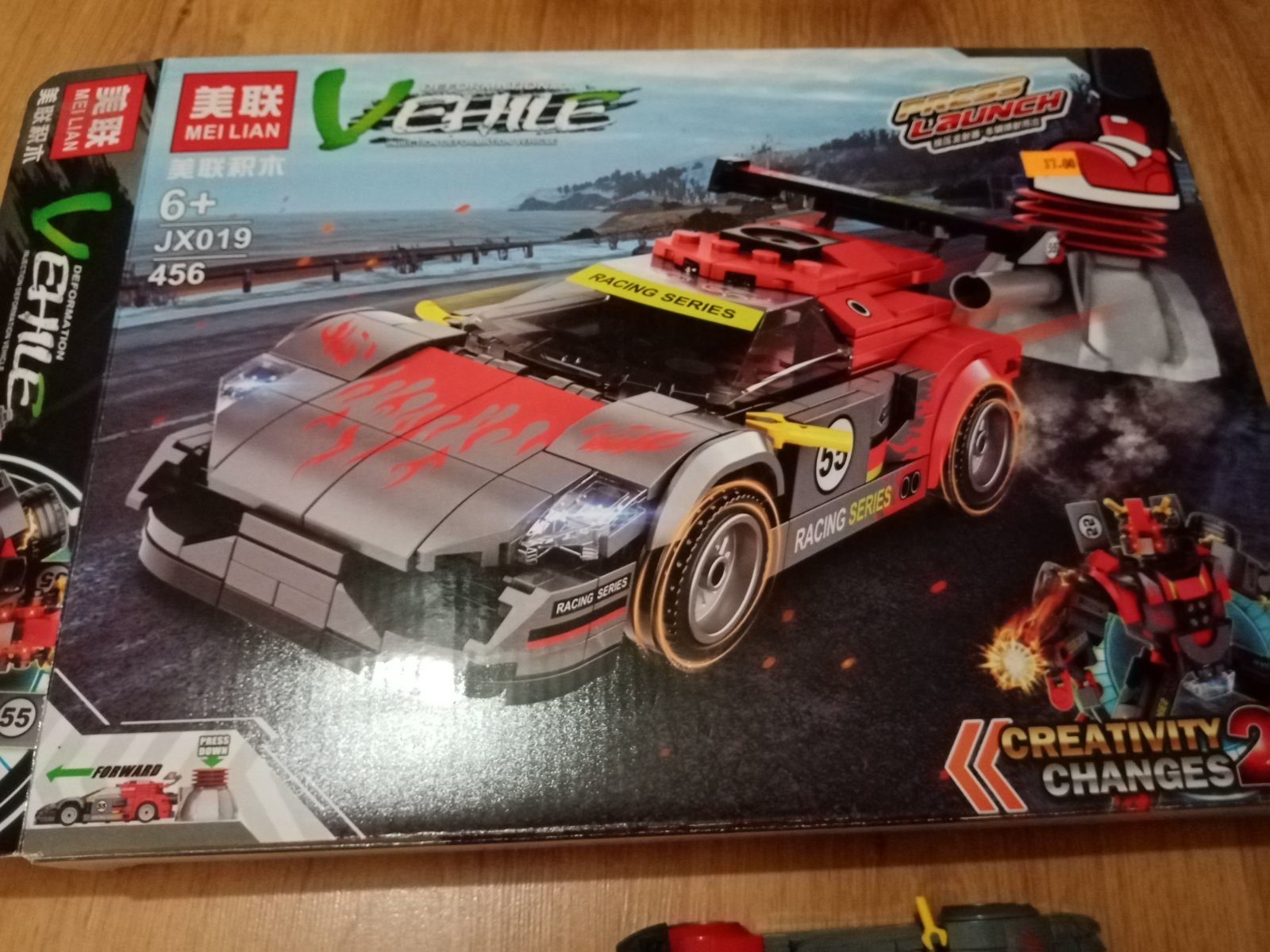 Autíčko a k nemu vystreľovacie zariadenie, ktore po stlaceni autíčko vystrelí vpred.