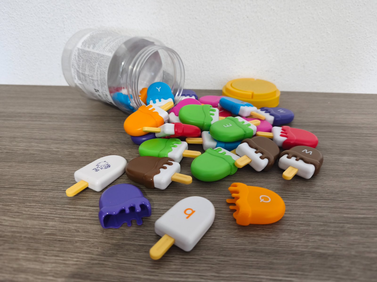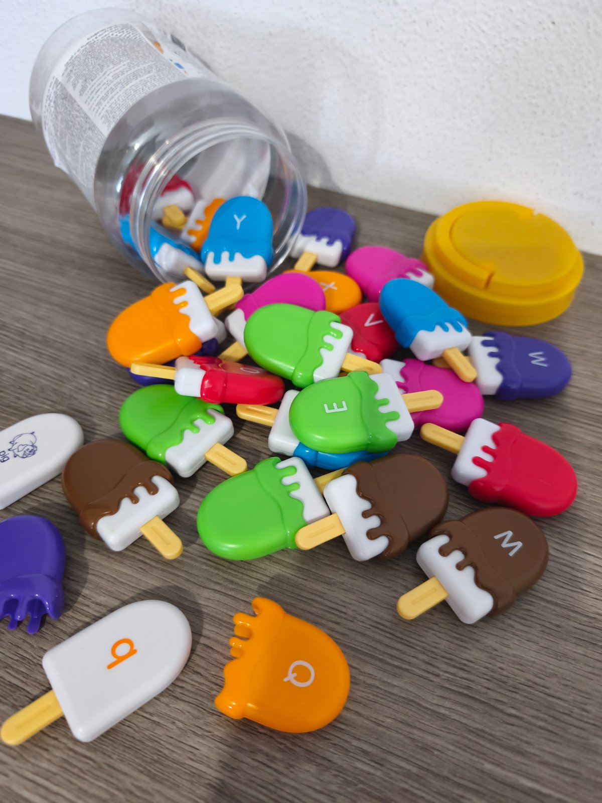 - krásna hračka na rozvoj jemnej motoriky, ale aj ako super doplnok do kuchynky - farebné časti sa napichujú na biele nanuky, super stav