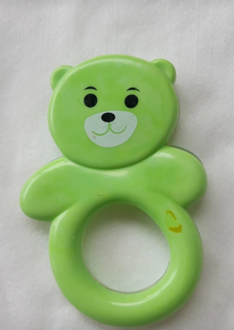 Hrkálka má menšie nedostatky na tváričke a na zadnej strane (vidno na fotke).
