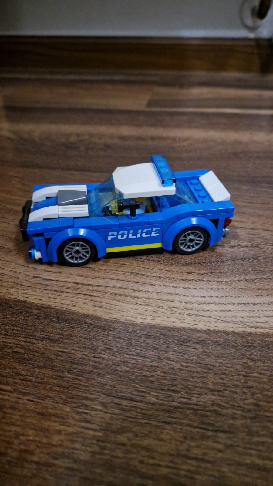 Hrané lego. Chýba panáčik- nahradený iným. Na 4 dielikoch odlomený jeden úchyt. Návod lepený.