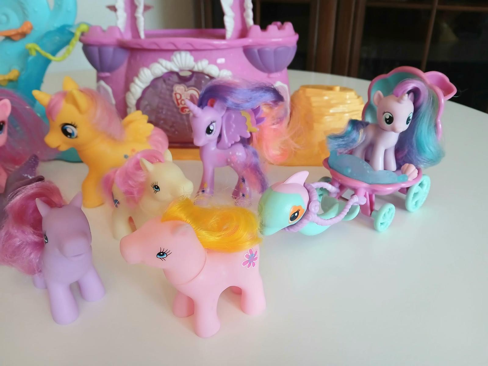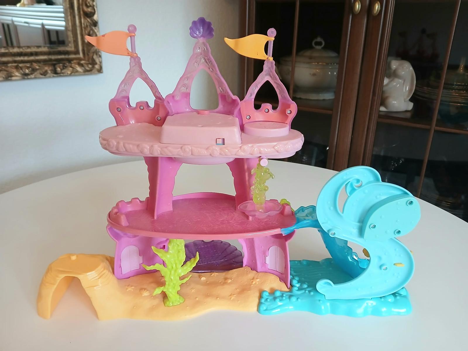 Krásny, morský hrad My little Pony, ktorého rozmery sú 51*37cm, zn. Hasbro. Hrad krásne svieti a vydáva zvuky, má funkčnú šmykľavku a morský koč pre poníky. Krásne, farebné poníky majú výšku od 8cm do 11cm a je ich spolu 10kusov. Všetko je čisté, vo výbornom stave. Cena spolu 30Eur. K hradu a poníkom darujem aj veľkého poníka, ktorý je vysoký až 60cm.