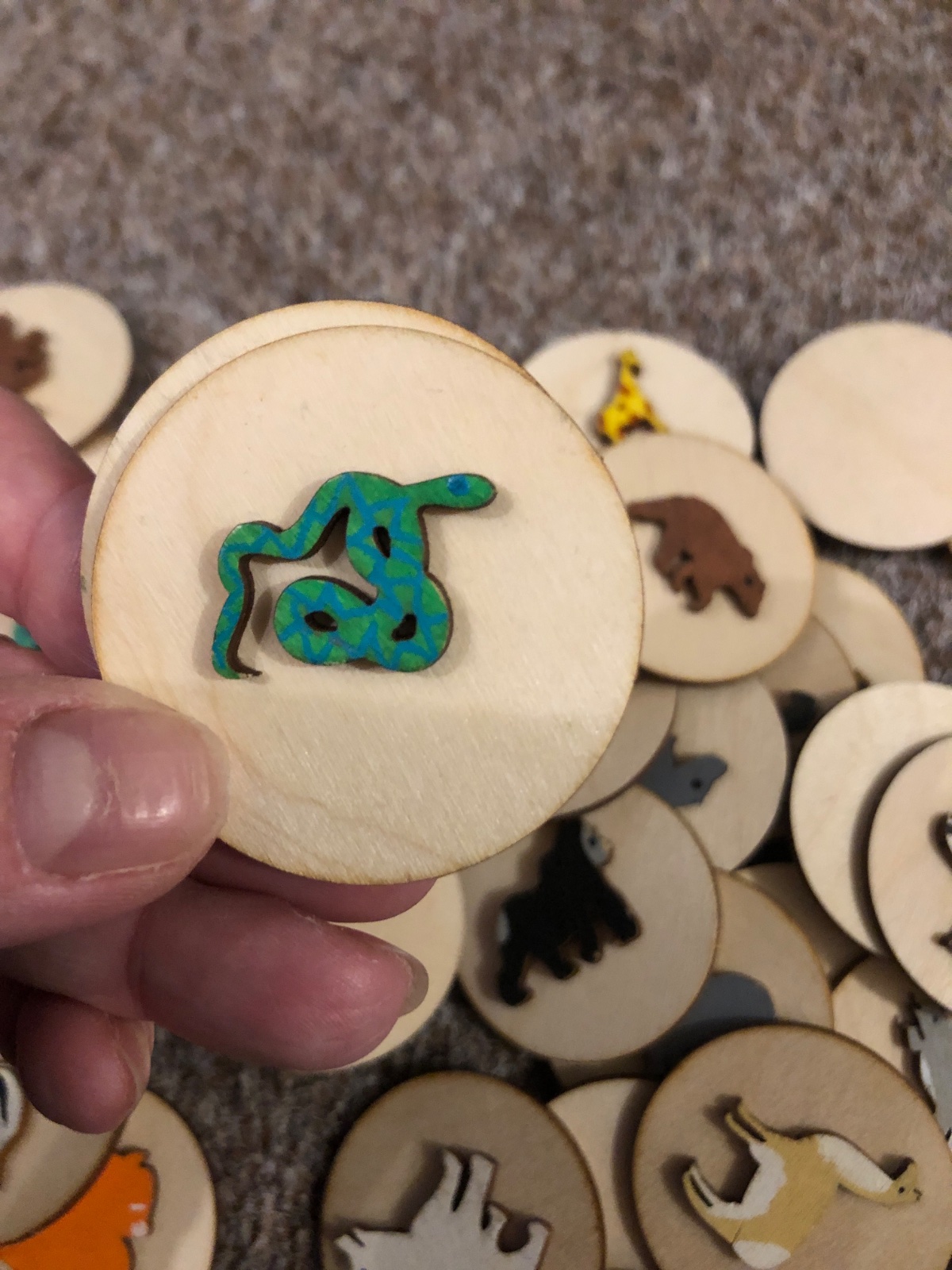 Drevene pexeso so zvieratami, 38ks. Sucastou je latkove vrecusko. Bez poskodeni.