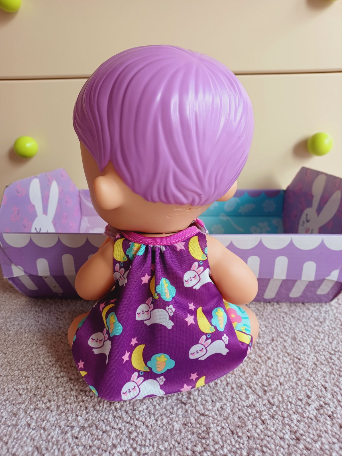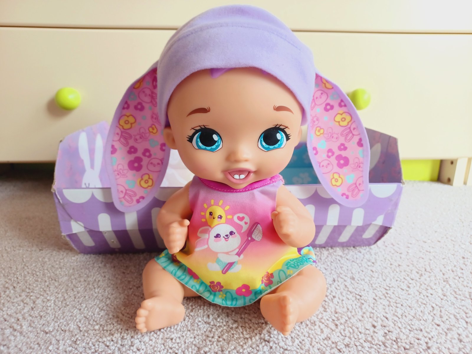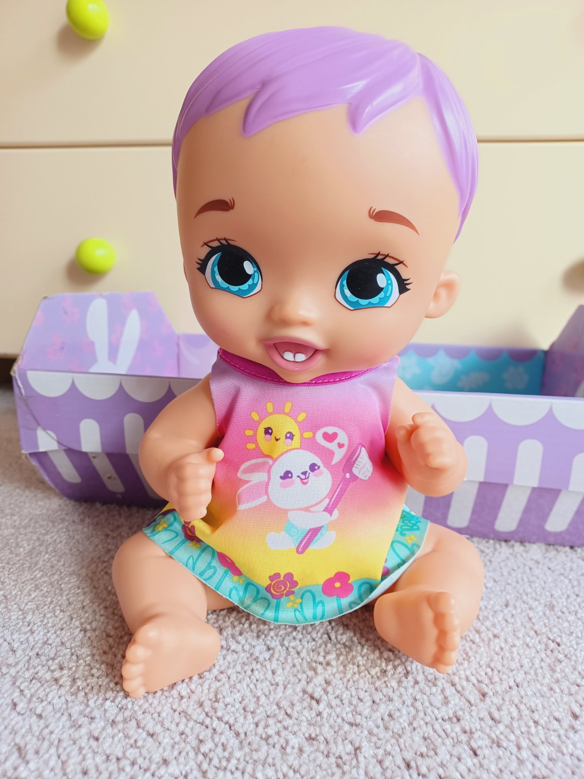 Krásna bábika vo veľmi dobrom stave, dcérka sa už veľmi nehrá s bábikami. Spolu s kartónovou postieľkou a príslušenstvom k umývaniu zúbkov.