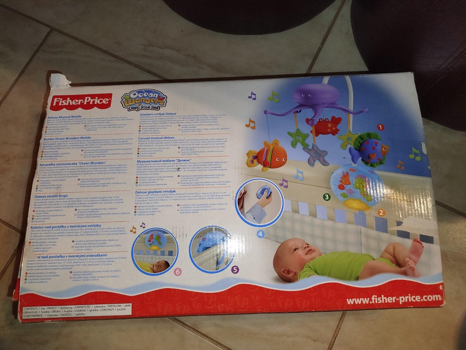 Kolotoč nad postieľku s jemnými zvukmi mora,skladbami od Mozarta a Bacha. Nočné svetielko v tvare mušle. Diaľkové ovládanie je súčasťou. Batérie treba zabezpečiť.