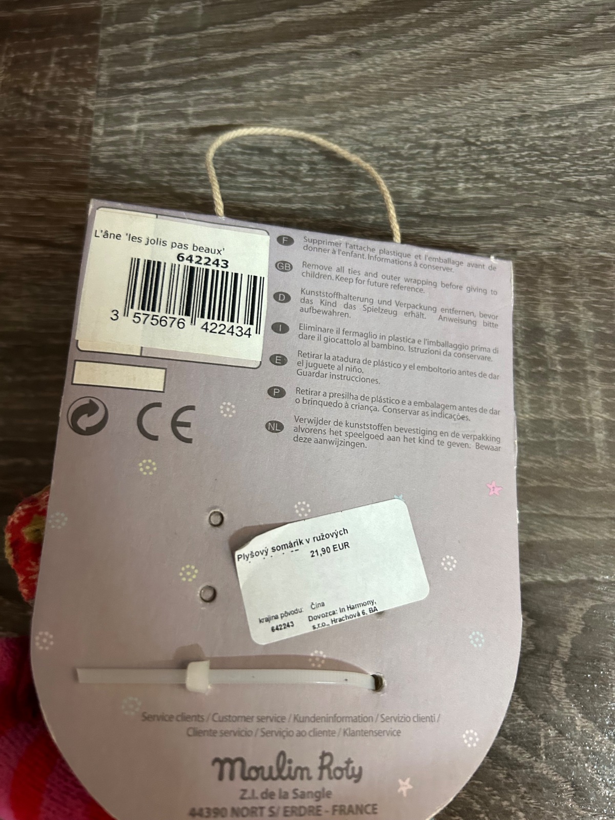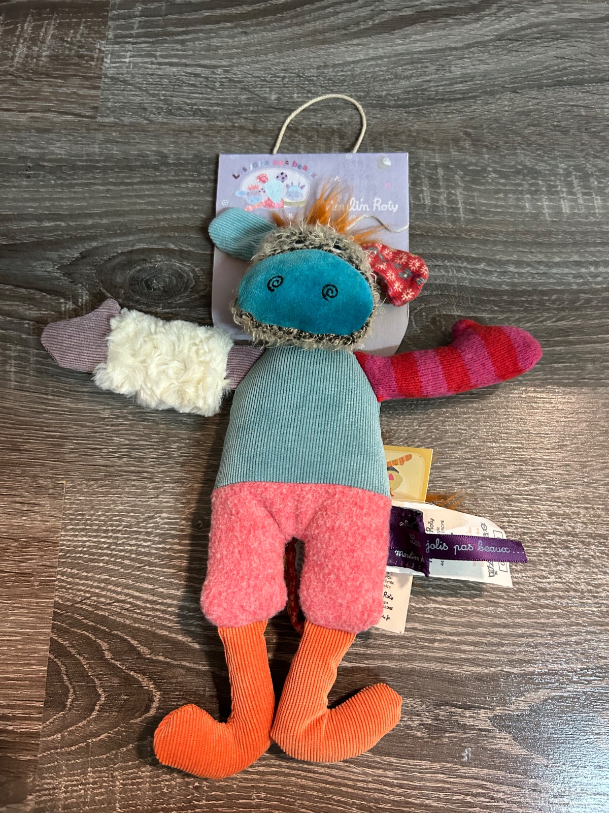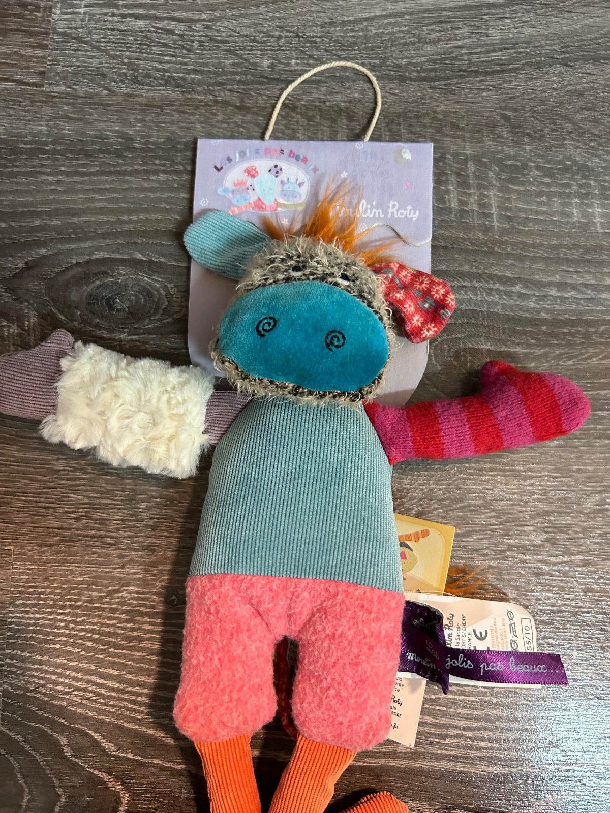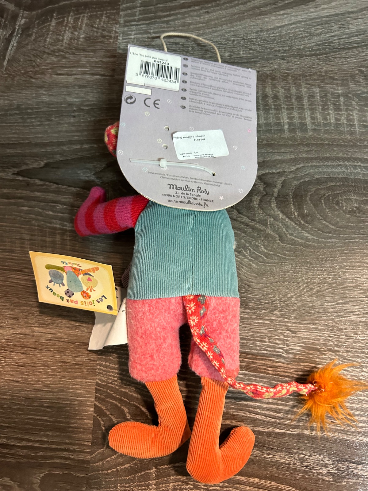 19p6k.Moulin Roty - plyšovy somarik v ruzovych nohaviciach.Je skvelý na maznanie a vďaka jemným a farebným textúram prispieva k dobrému kognitívnemu vývoju dieťaťa.