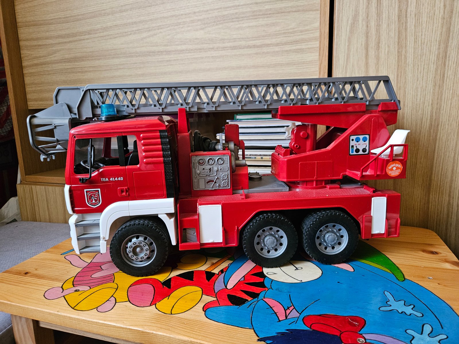 dlzka 50cm, vydáva zvuky a svetelné efekty. Vysuvací rebrík, sklopná kabína.Auto je v top stave.