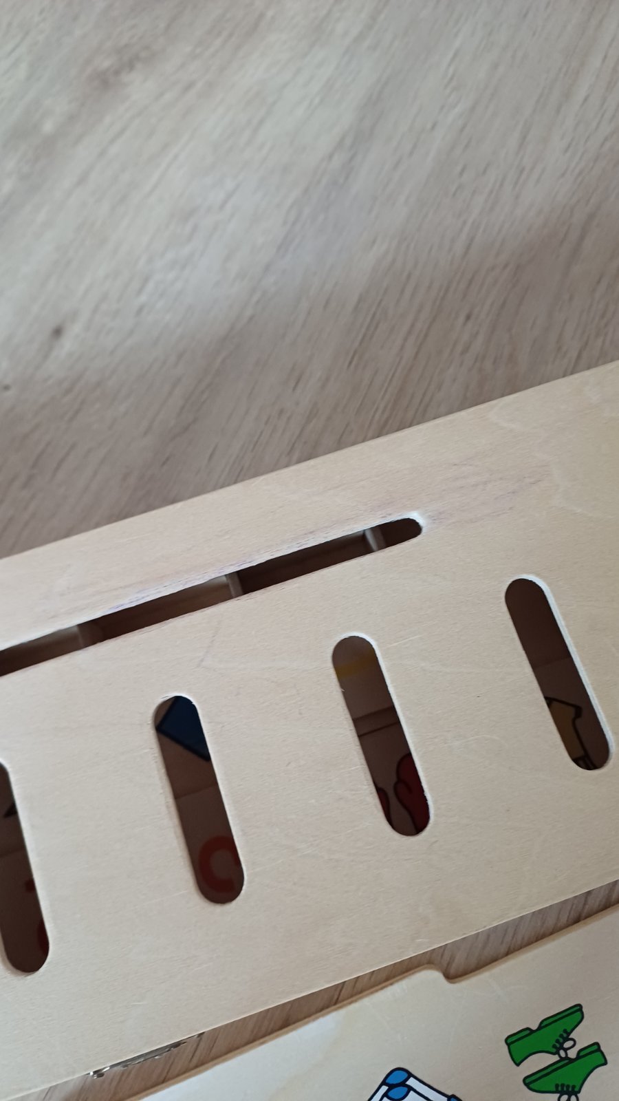 Posuvame super hracku na triedenie Small Foot. Dve deti uz z nej vyrastli, ale stale super stav, nic nechyba. Na vrchu malinko viditelne pocmaranie farbickou (odfotene).