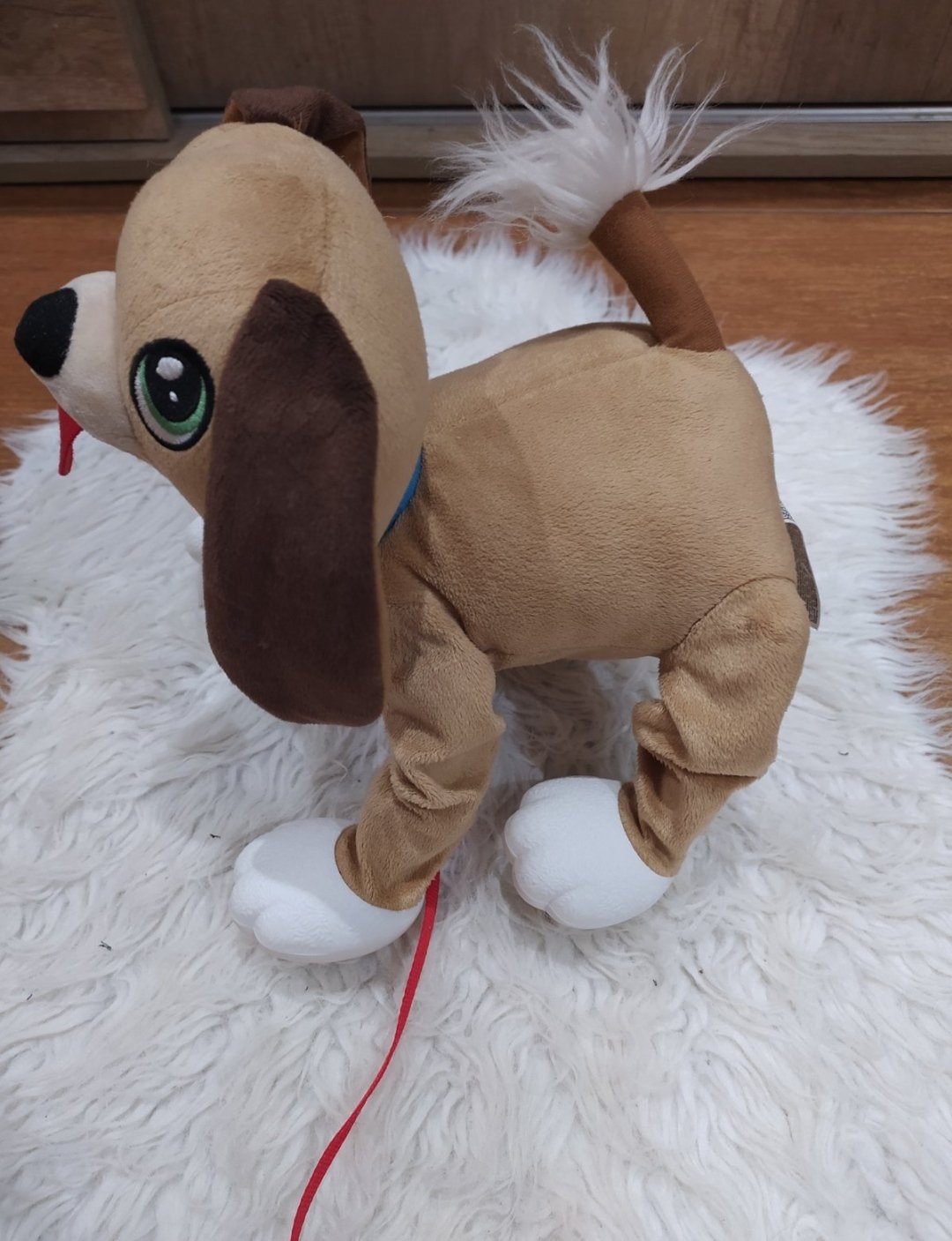 Jeho tľapky sú zdrsnené a vhodné na akýkoľvek povrch. Nie sú potrebné žiadne batérie. Jedna lanká nefunkčná.,v