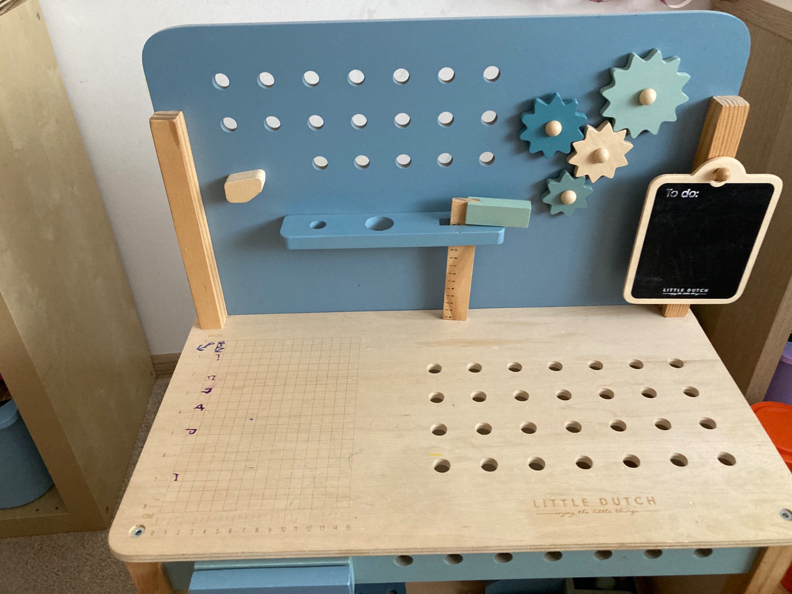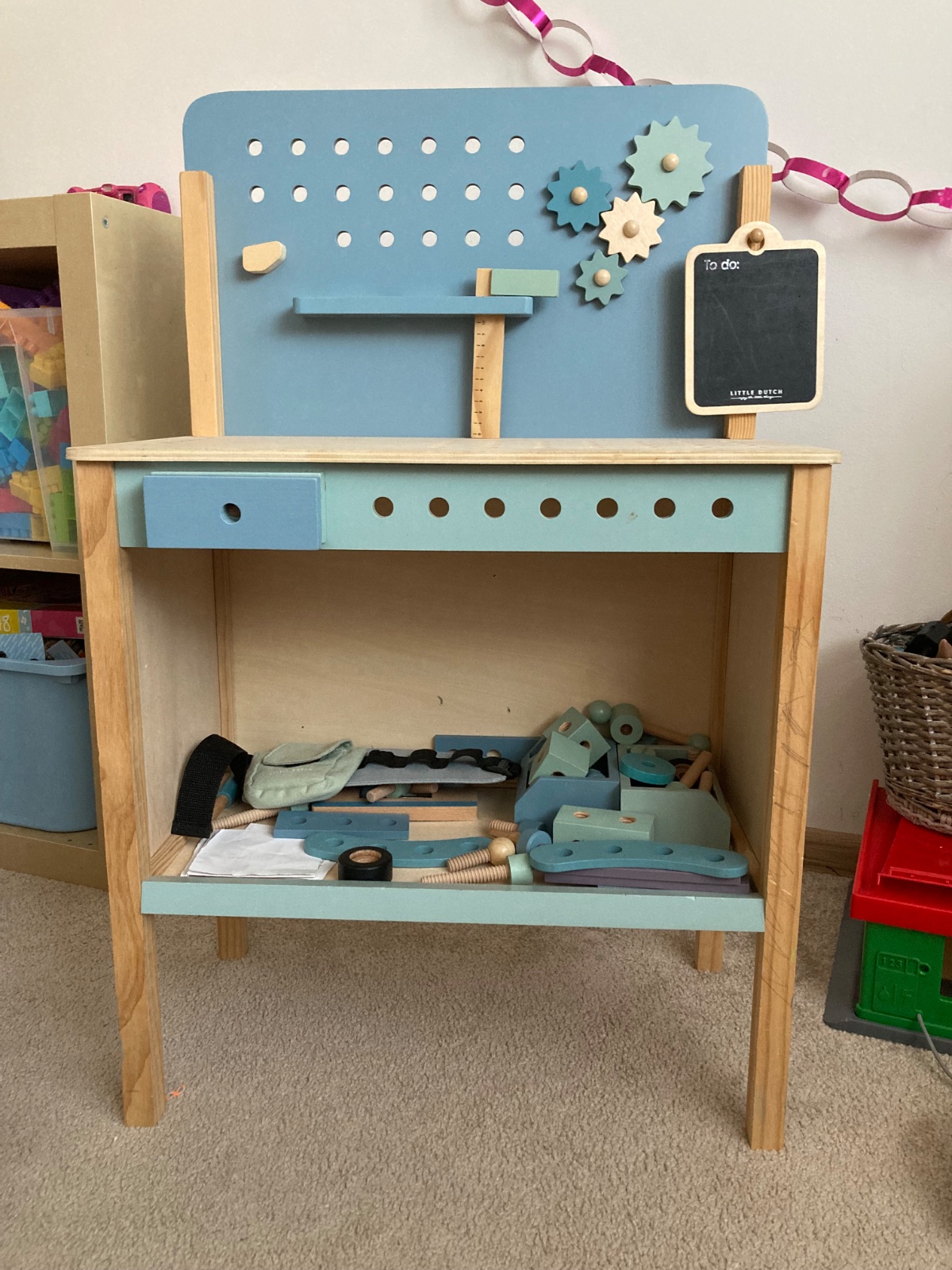 Predam krásnu nepouzivanu drevenú funkčnú sadu pre malých kutilov, rozmer 40x26x8,5 cm, ležala len dlhsie v poličke. Obsahuje vsetko ako na fotke. Dovoz z Talianska.