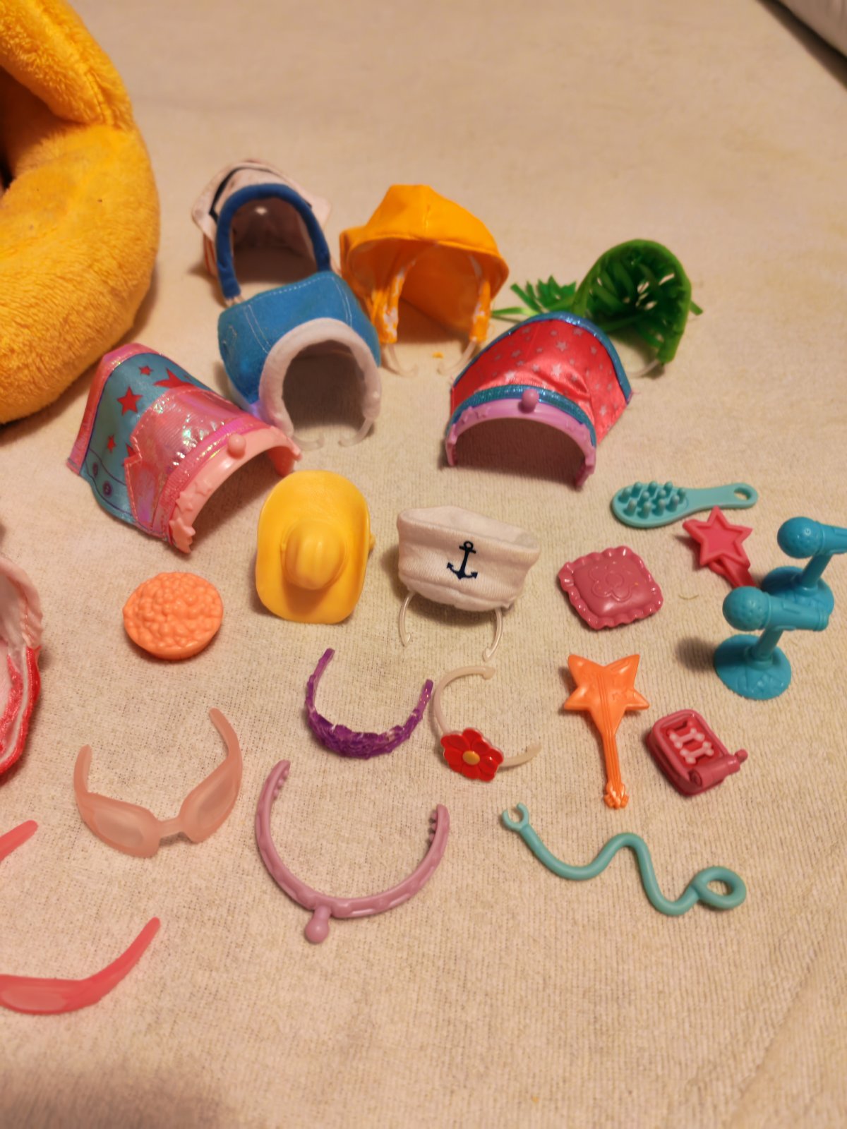 Milé škrečky na baterky, vydávajú zvuky, behajú, majú senzor keď narazia na prekážku, dlžka 11cm, jedine oranžový sa nejak nepohne na podlahe, pritom sa kolieska točia. V cene sú 4 škrečky, aj pelech 30x27cm a doplnky.