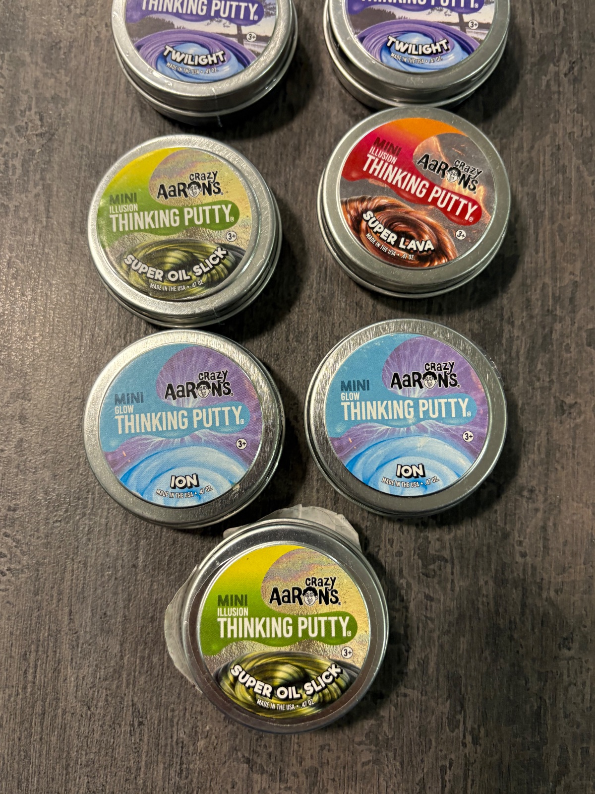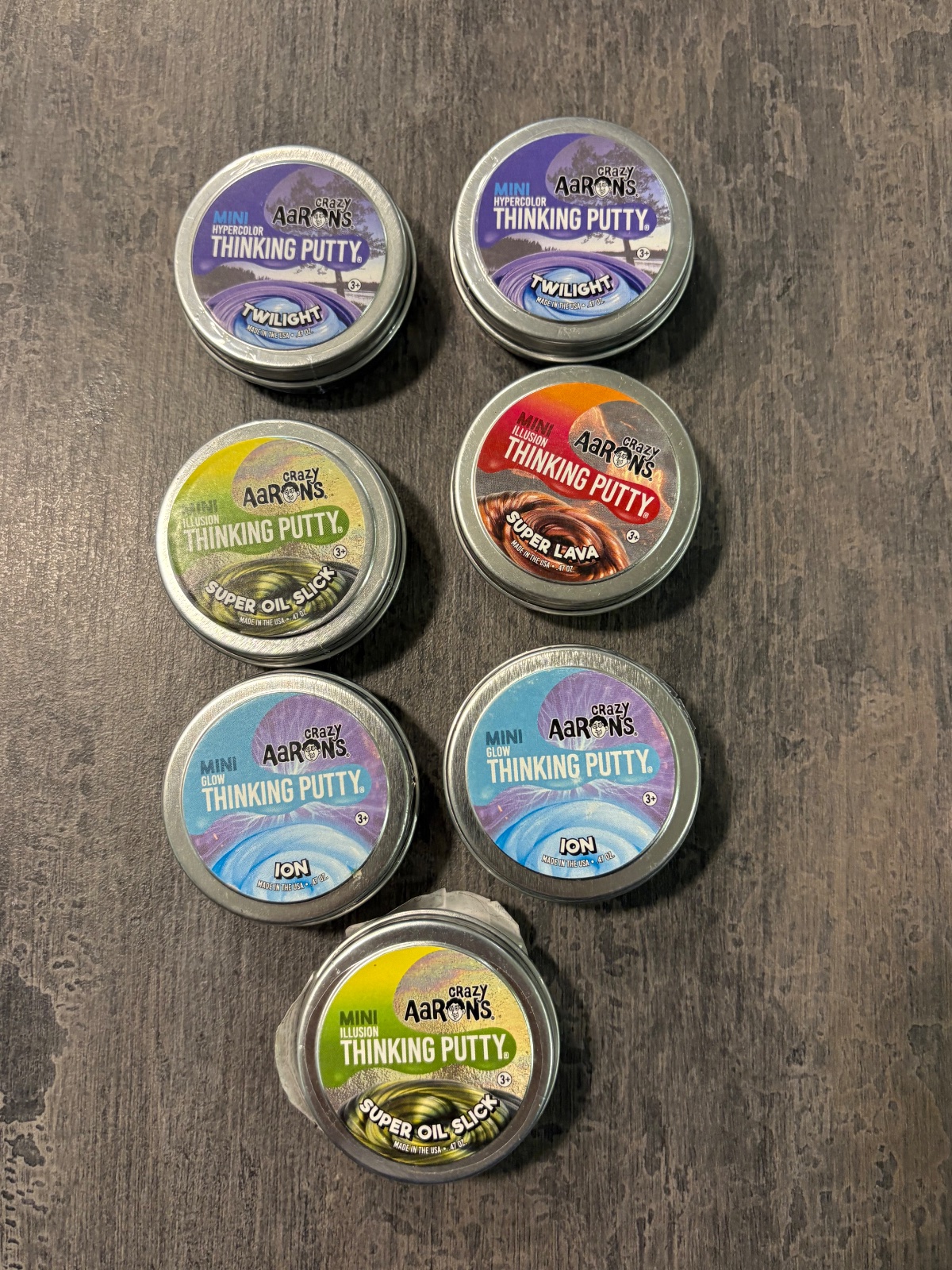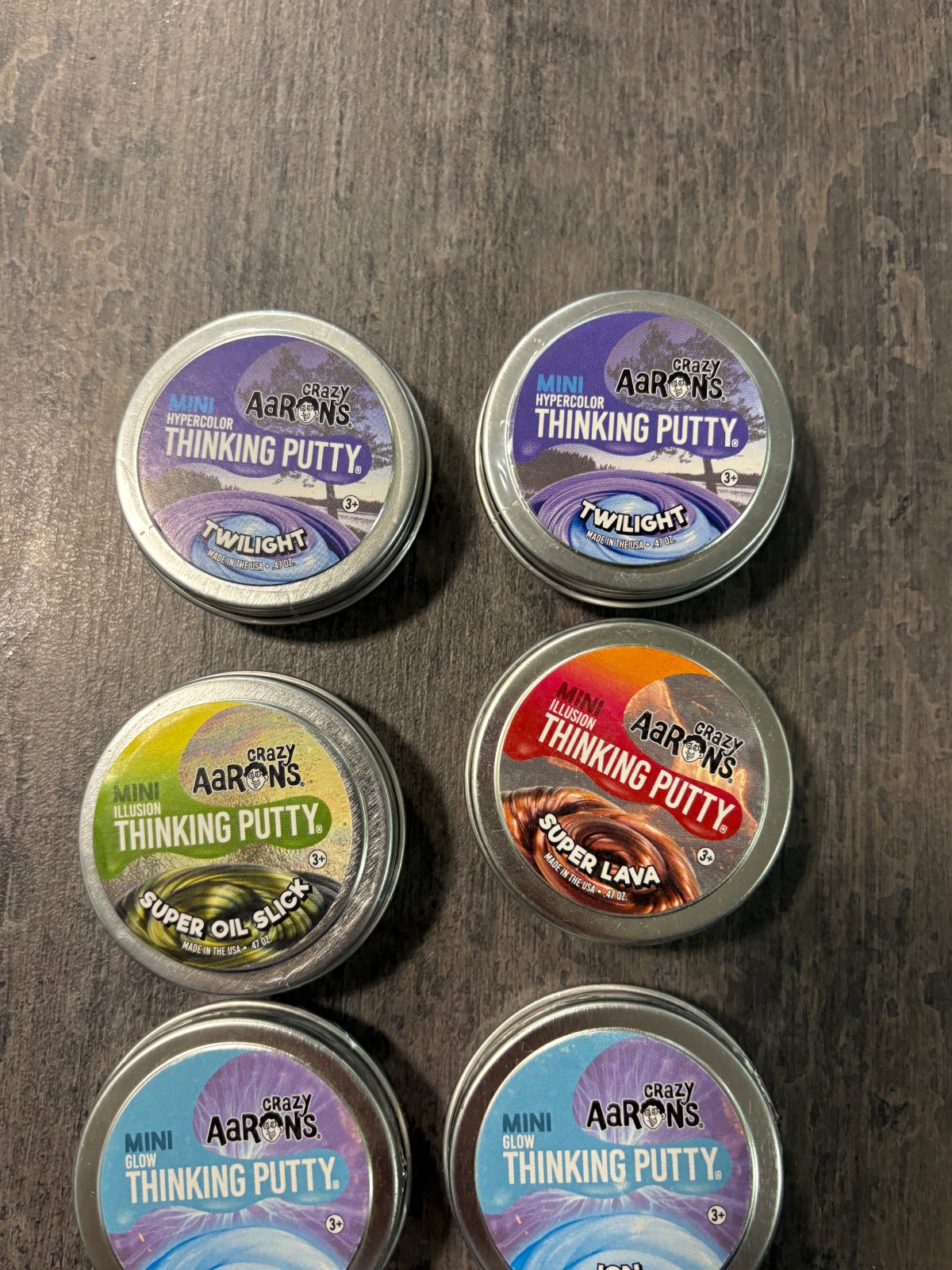 Crazy Aarons- Inteligentná plastelína sa naťahuje ako žuvačka, skáče ako lopta a trhá sa ako papier! Neznečisťuje a nemastí ruky a nevysychá.Plastelína je výborná na tréning jemnej motoriky a svalov rúk, podnecuje vizuálne vnímanie, fantáziu i predstavivosť. Nielenže vám prinesie kopu zábavy, ale aj uvoľní napätie, nakoľko sa využíva ako antistresová hračka.Materiál: zdravotne nezávadný silikónObsah balenia: 13 g (balené v praktickej plechovej krabičke, ktorá chráni plastelínu pred znečístením, no hodí sa aj ako milý darček)Priemer balenia: 5 cm