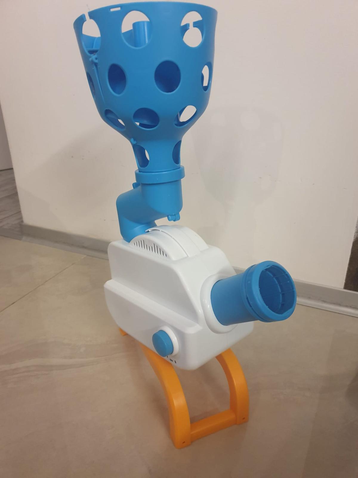 Nova, nehrana - iba zlozena kvoli nafoteniu . Kupované v Nemecku. Elektrické super delo vystreľuje gule všetkými smermi. Gule musia byť chytené sieťou, ktorá je pripevnená k hlave. Pre 1 – 2 hráčov. Vhodné pre vek 6+. Vyžaduje 4 batérie LR6 (nie sú súčasťou balenia). Súčasťou balenia je 10 loptičiek. Možno použiť štandardné loptičky na stolný tenis. https://www.youtube.com/watch?v=zoW04yjEW4E