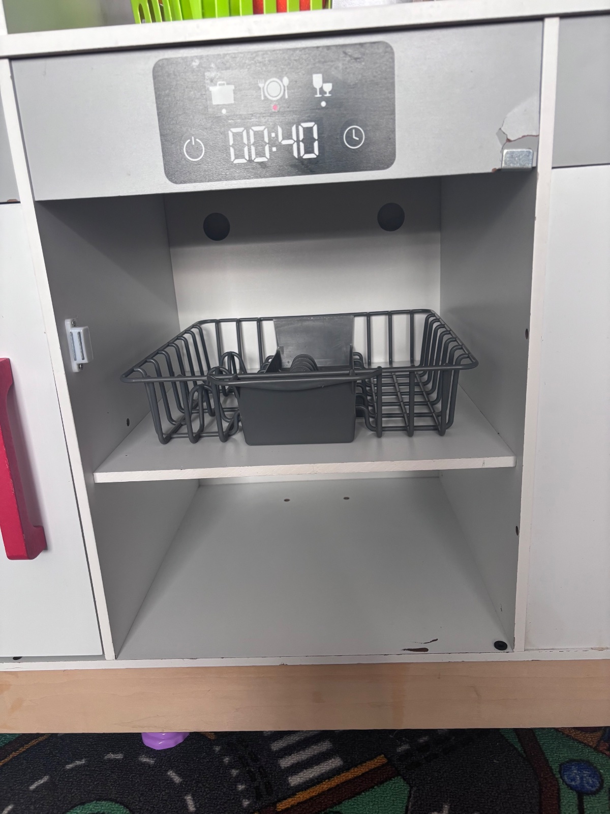 Ma odtrhnute jedny dvierka,tie dvierka uz ani nemame,na jednej doske chyba srob,tocka je tiez prilepena,ma mierne skrabance ale podla mna v zachovalom stale