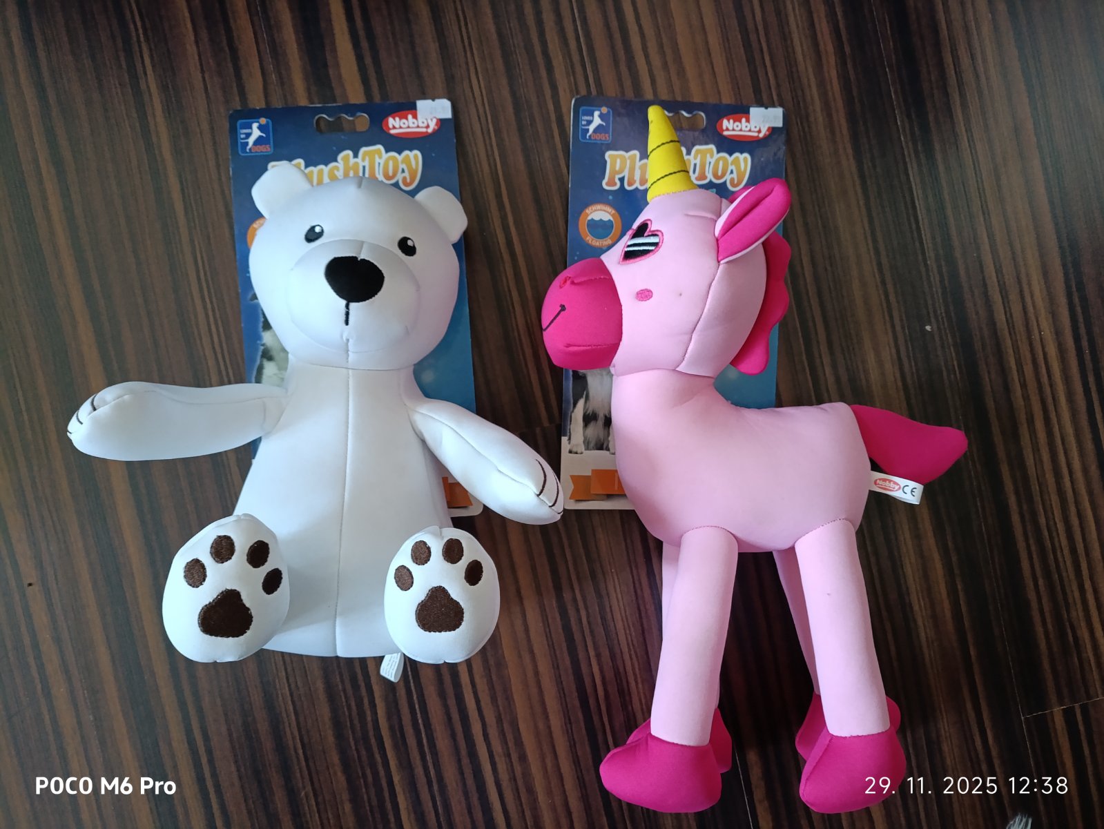Predám NOVE hračky pre psíkov, plávajúcich plysakov, stali dlho v regáli. Sú originál zabalené, na bielom je pár žltých fliackov, na ružovom jeden na hlavičke, viď foto. Tie žlté mi foťák neodfotil, nakoľko nie sú skoro vidno.
