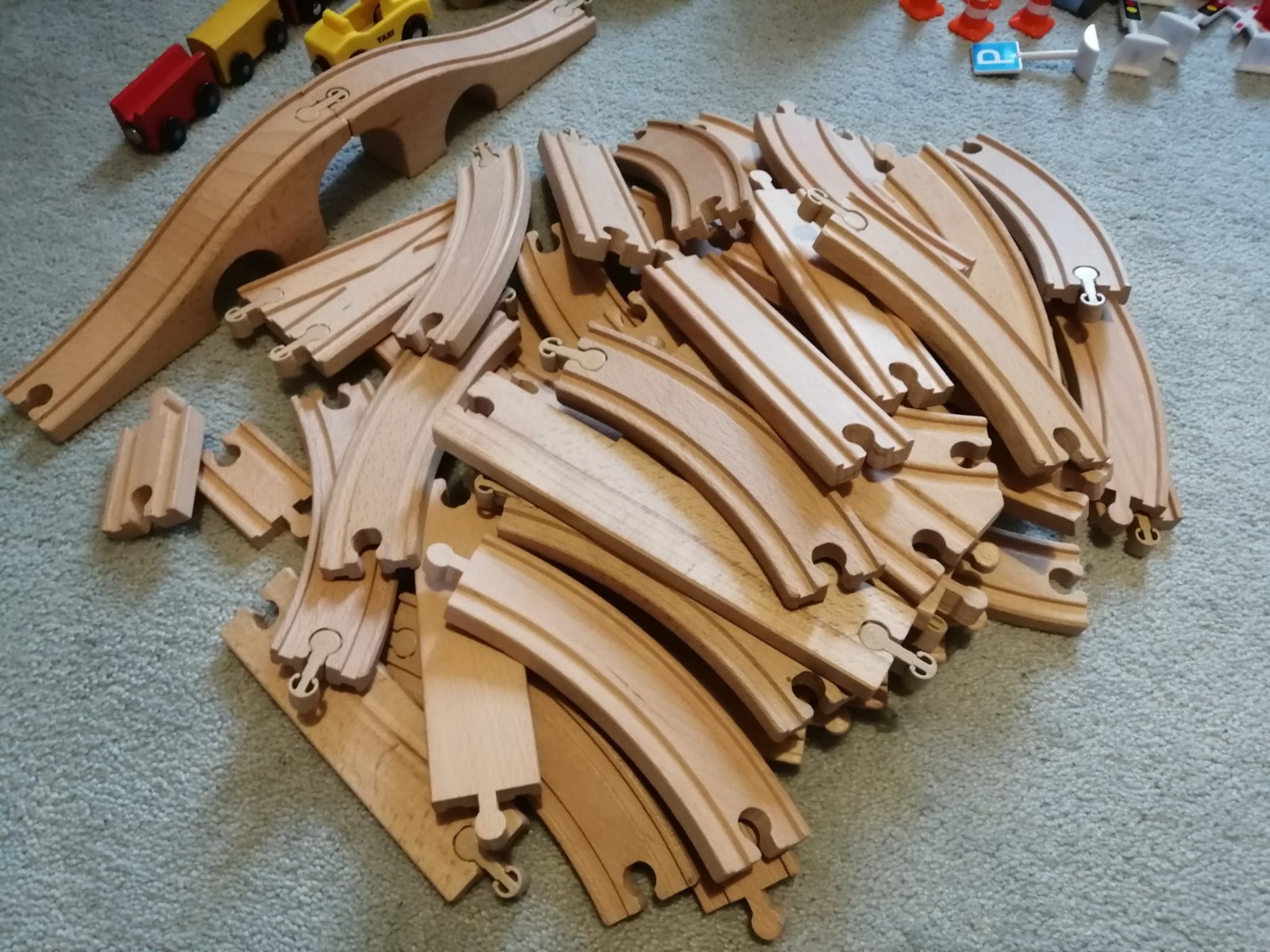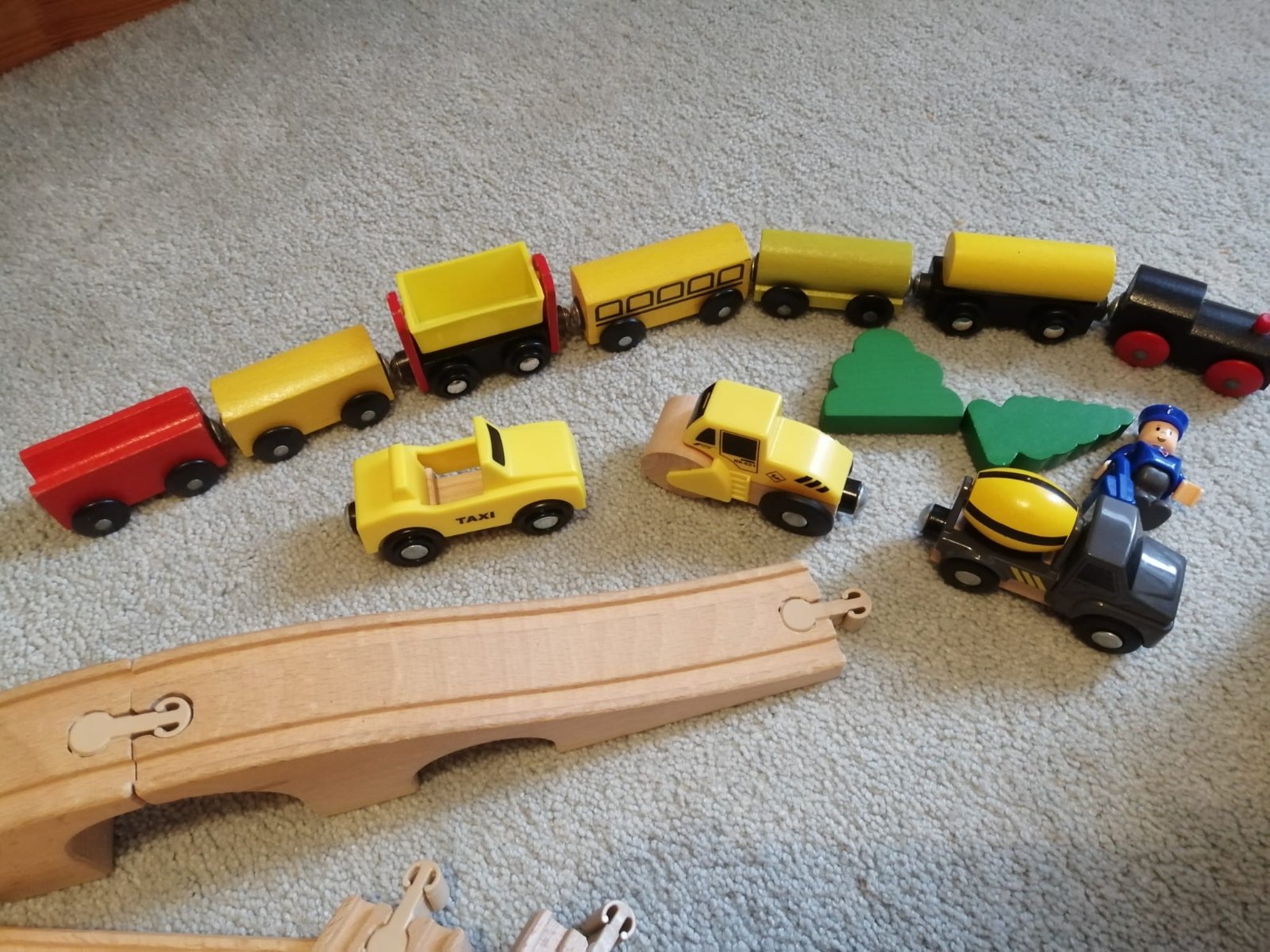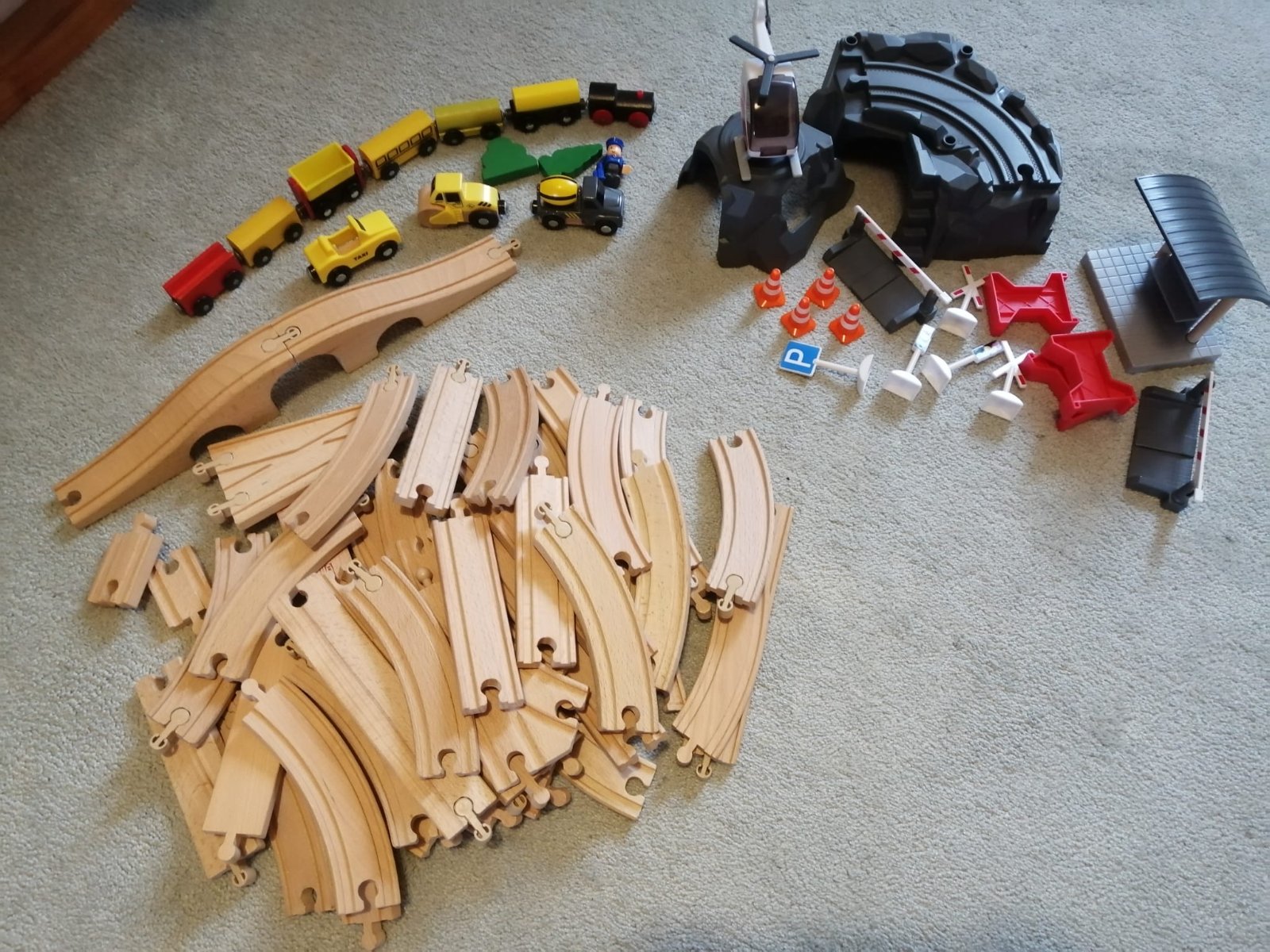 Drevená dráha pre vláčiky s množstvom ďalšieho sortimentu z IKEA a LIDLu, sú navzájom kompatibilné a v dobrom stave, hralo sa s nimi málo.