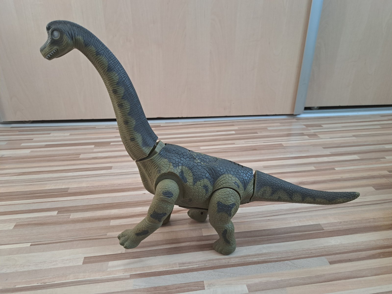 Predám minimálne použitú hračku na baterky. Dinosaurus chodí a znáša vajíčka. Vydáva zvuky a svietia mu oči.