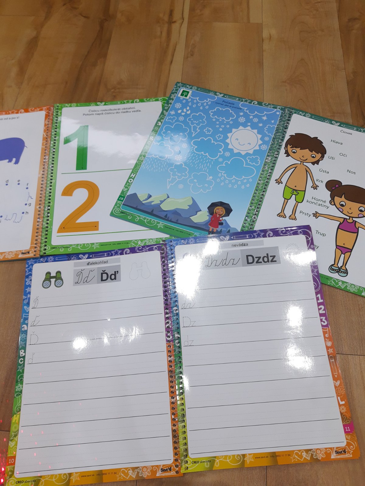 Darujem predškolské pracovné stierateľne listy. Nepoužité.