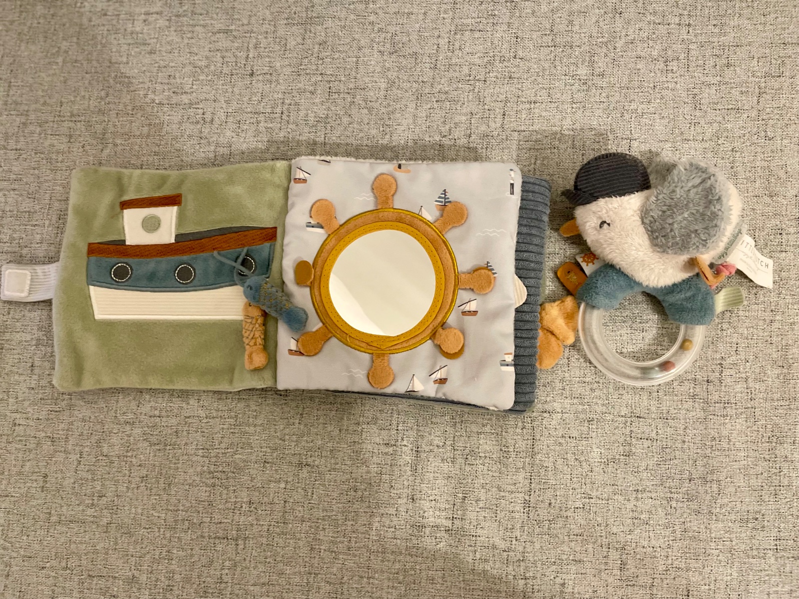 Predám plyšovú textilnú knižku Little dutch a hrkálku - Námornícky záliv.