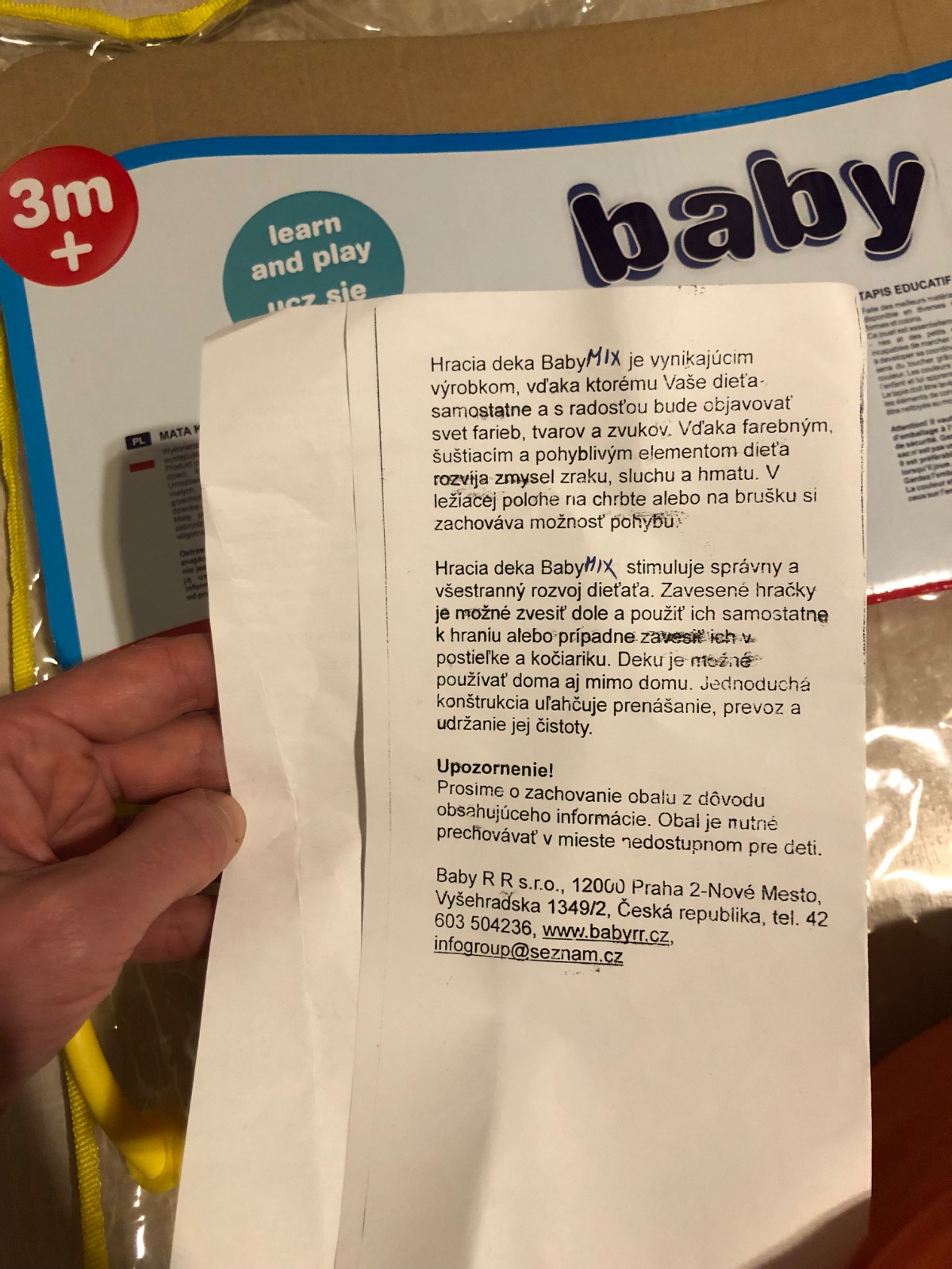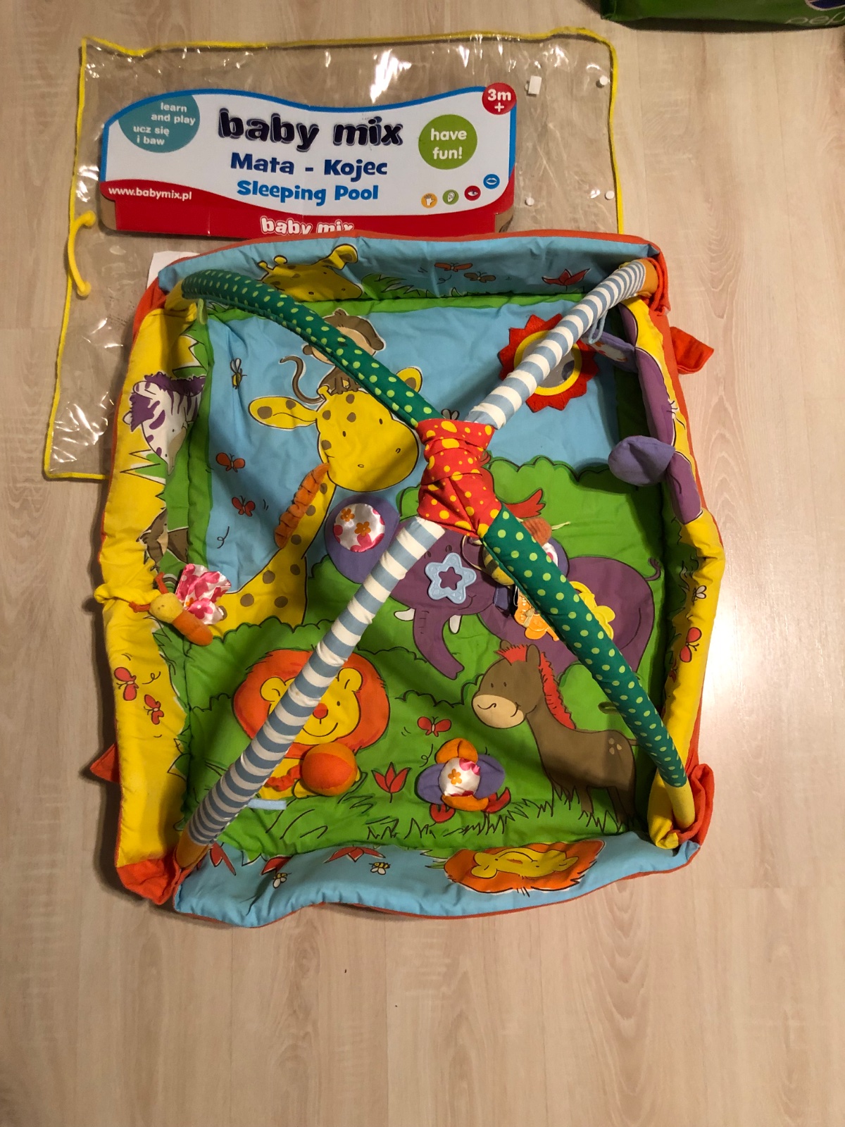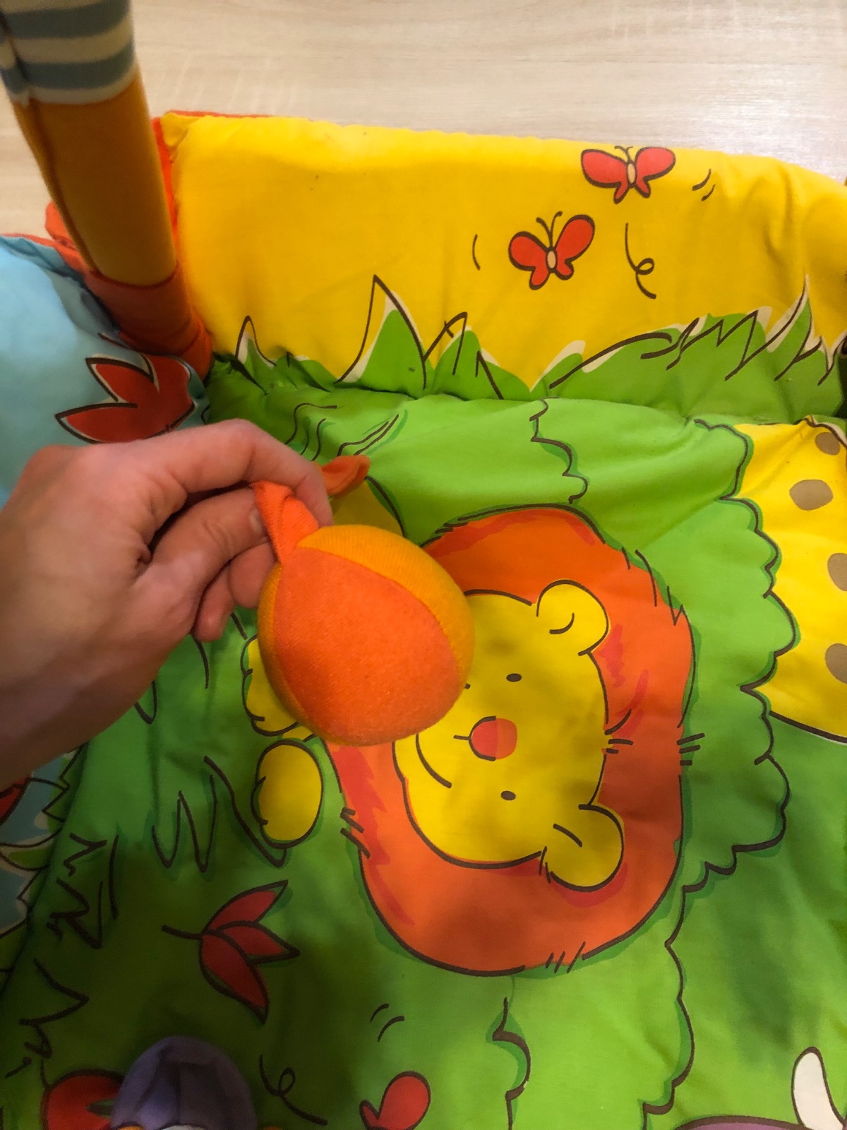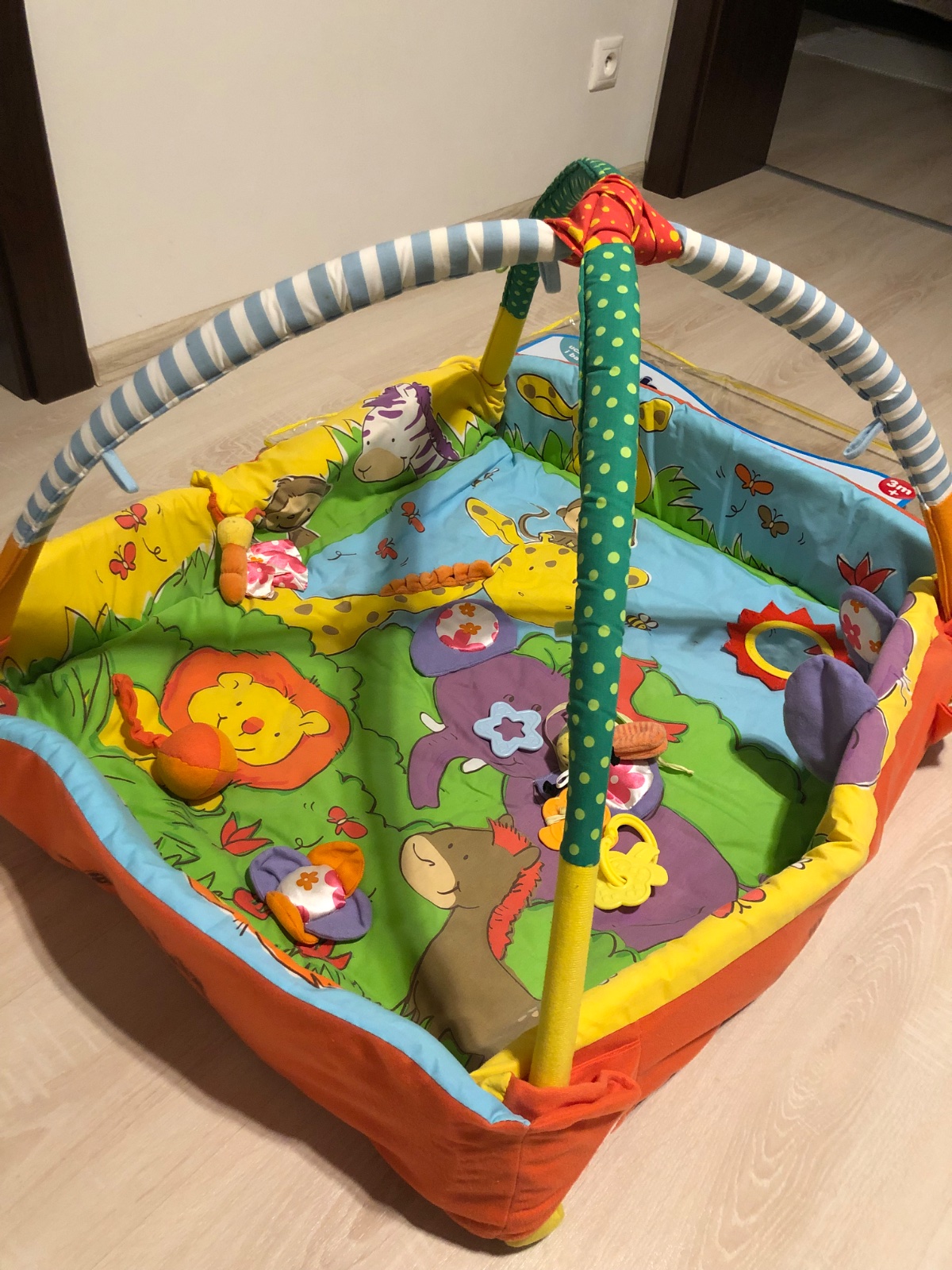 farebna hrana hracia deka-podlozka pre male babatka, v ok stave, na lavej strane na okraji, bude treba nejako narovnat tu vypln (molitan), lebo je trosku zohnuty od skladovania, ale inak som nenasla ziadne poskodenia…da sa to v pohode poskladat a zlozit