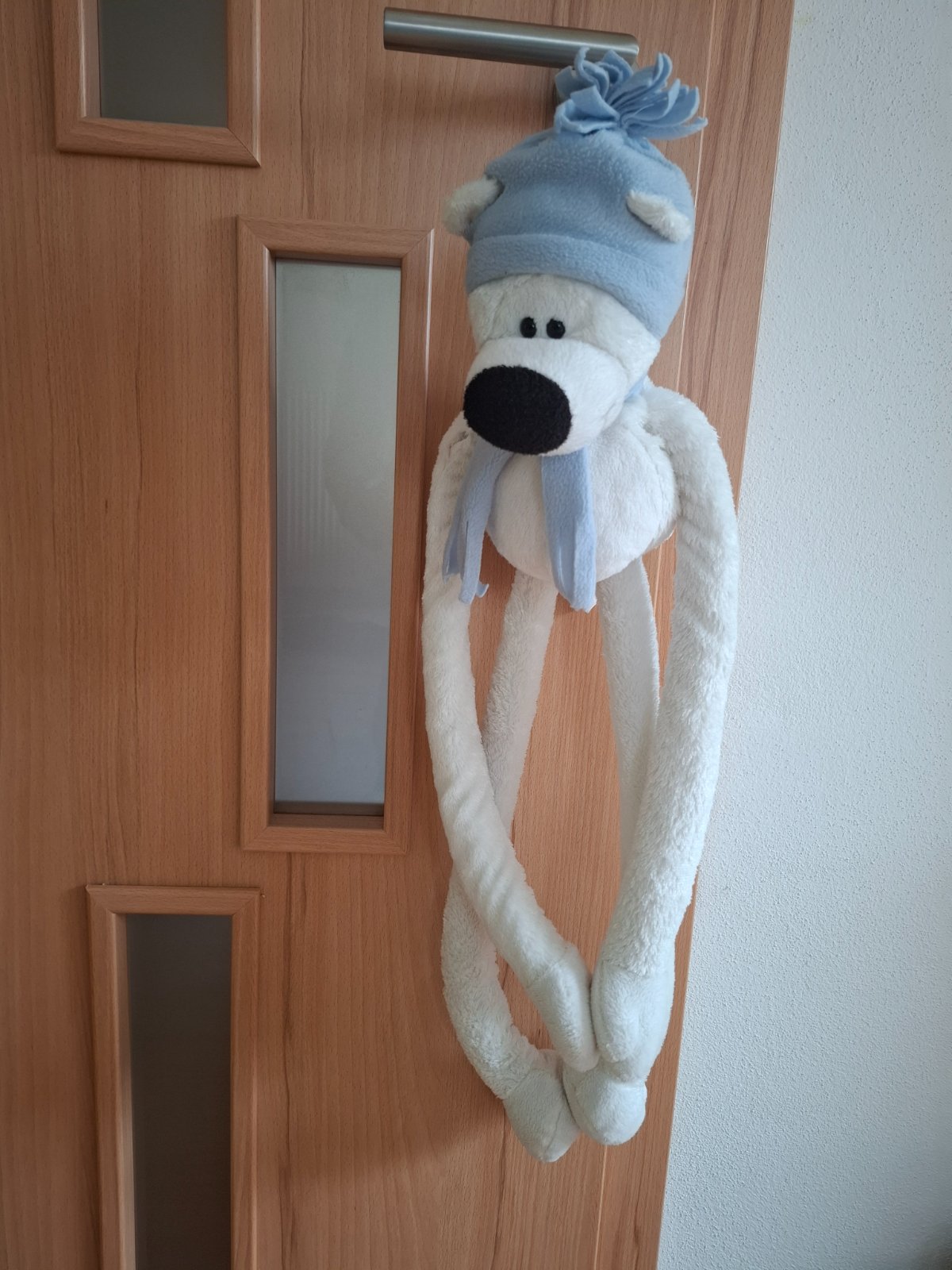biely macko - nohy a ruky sú pohyblivé, na suchý zips cena 3 Eur