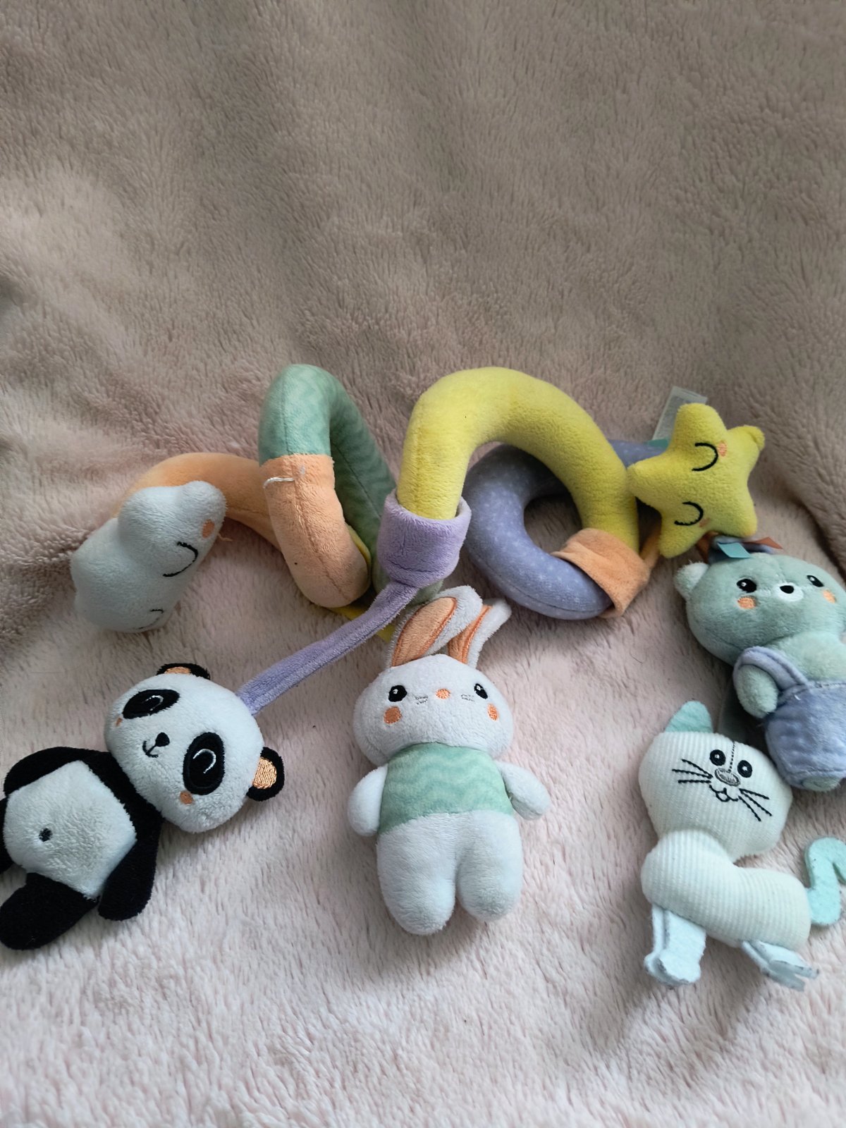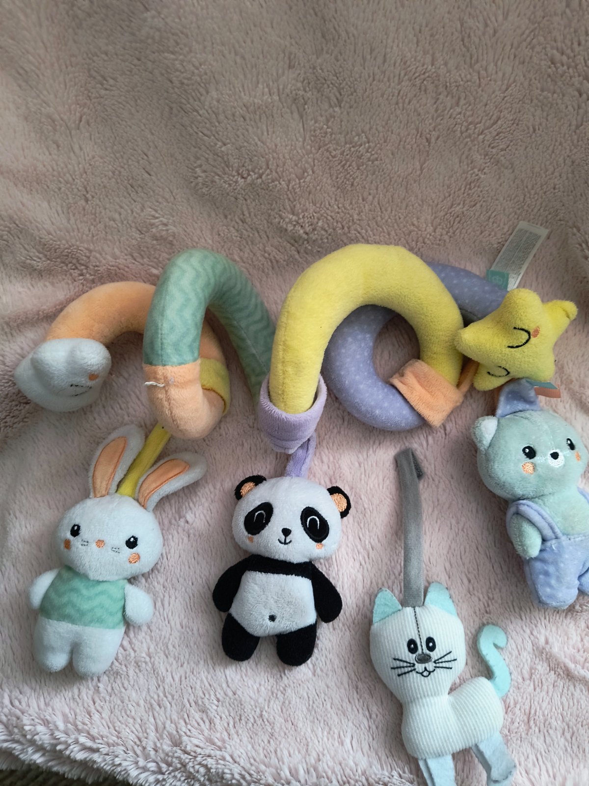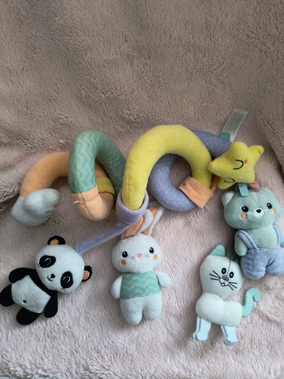Vhodna ako pre dievčatko aj chlapčeka pekne zabaví dieťatko pri ceste v kočíku alebo v postieľke . Pekný hrany stav bez poškodení
